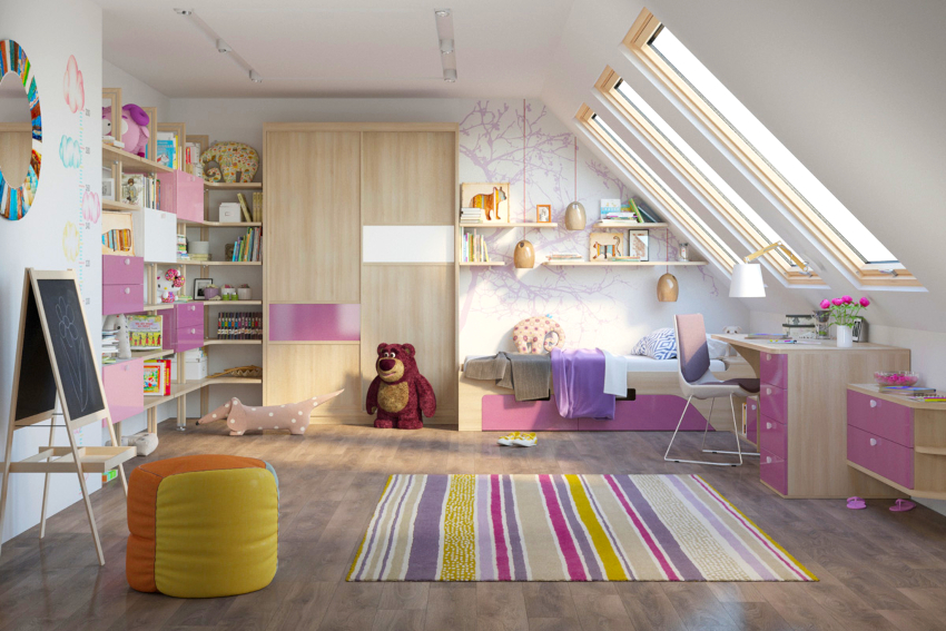 - For a toddler up to 6 years old. Children of this age are characterized by increased curiosity and excessive activity. This means that furniture should be functional, safe and comfortable. It is best to design a dedicated storage system that can accommodate all toys.