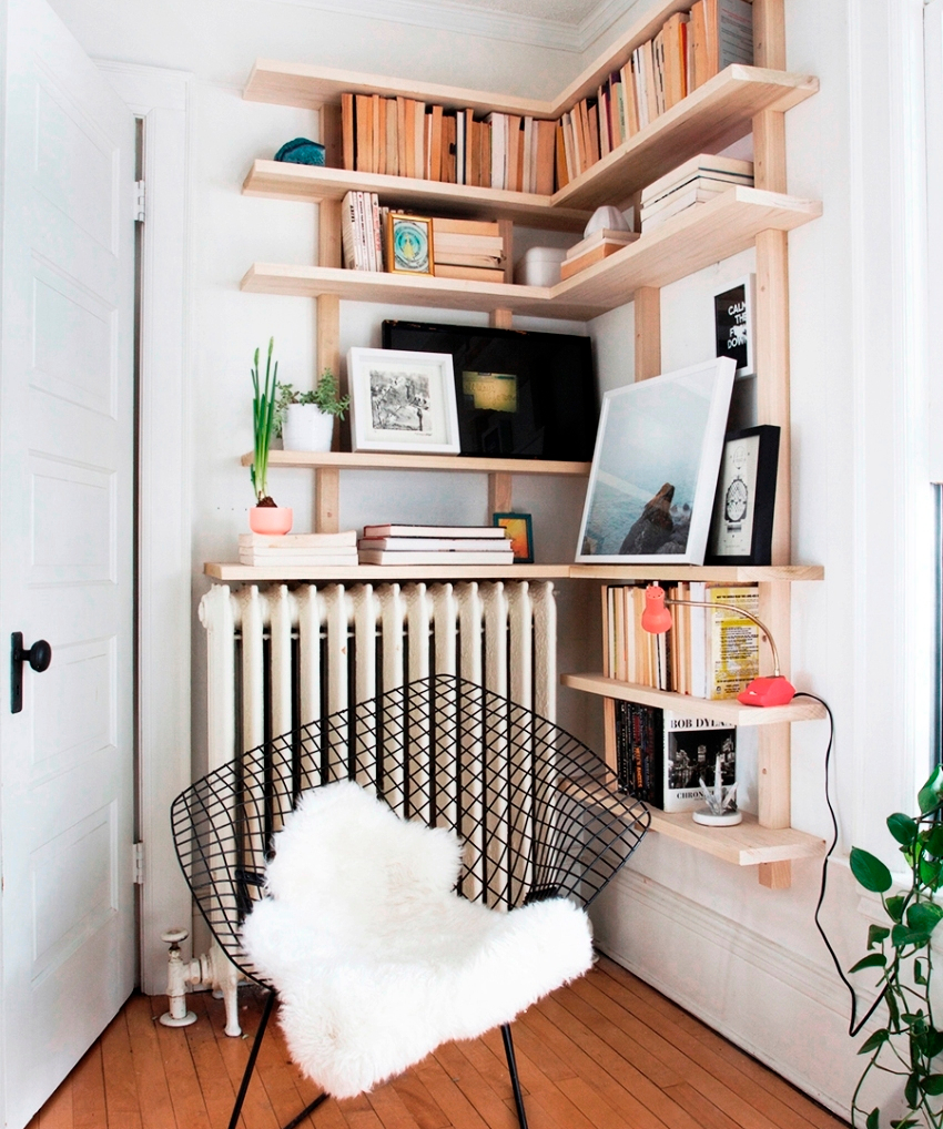 Speaking of corner structures, it should be noted that they are ideal for arranging workplaces and framing computer tables. It will be much easier to study or work if you can reach the book you need without getting up.