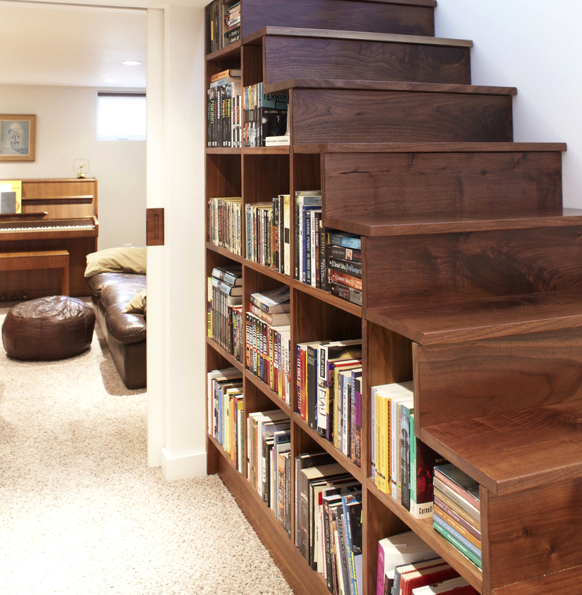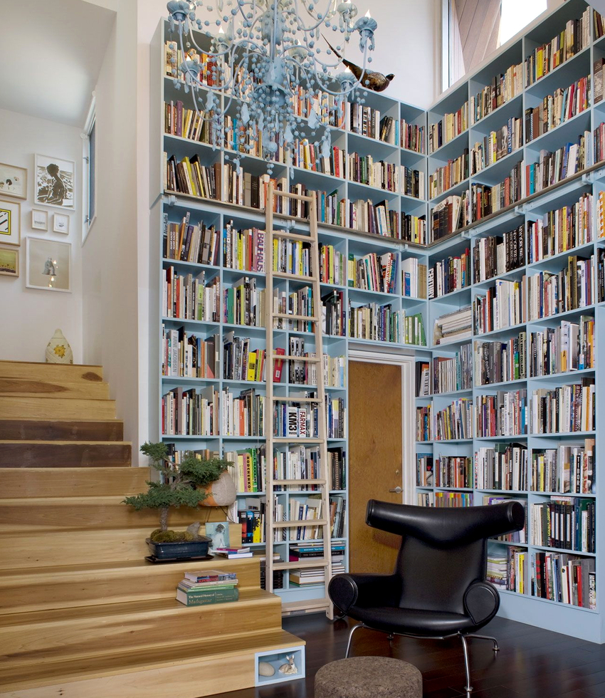 For rich collections, a multi-tiered bookcase is the best solution. Photos of such structures, among which you can choose the best option for your own interior, are easy to find on specialized sites.