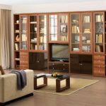 Speaking of wall-mounted bookcases - cabinets with glass doors, it should be noted that they will be an excellent solution for giving the room a stylish and modern design.