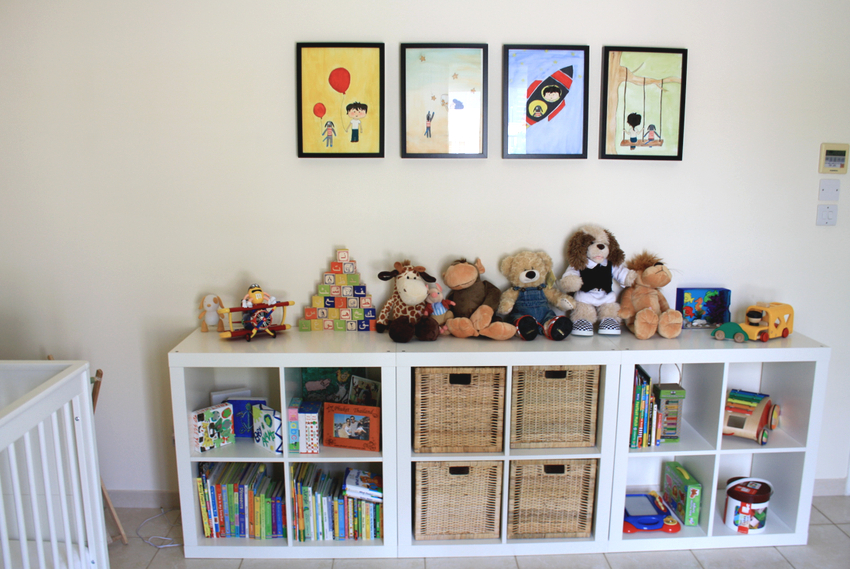 - For an infant under 1 year old. During this period, he still has few toys, but instead of them there are many hygiene products and clothes. One small shelf is enough for all toys.