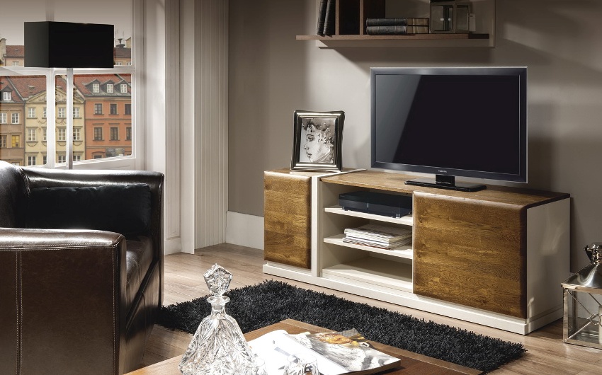 Chests of drawers for TV are presented in several versions, which allows the buyer to make a choice at will