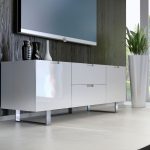 Some models of long dressers in the living room in a modern style include a special mobile platform for installing a TV in their design. It can be pulled out if desired. This solution has two distinct advantages. Firstly, the TV set on such a platform will be hidden from prying eyes during inactivity. The second advantage is that the equipment is less prone to contamination.