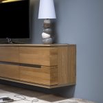 The wall-mounted version of this furniture has a modern look. From the name it becomes clear that it is being mounted on a wall. For this, special fasteners are used. It is worth saying that the beautiful dressers in the living room belonging to the wall group are great for rooms that suffer from a lack of free space. Such furniture is small in size.