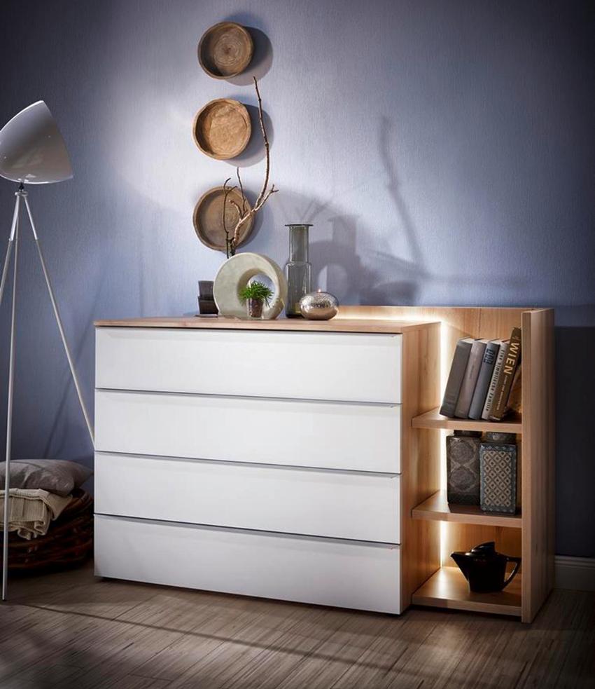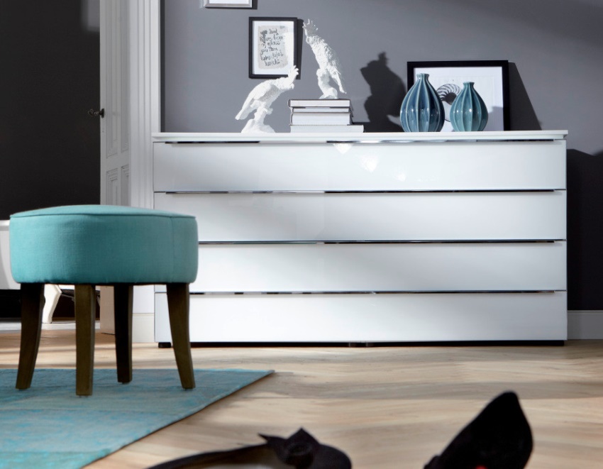 Practical and functional chests of drawers can be bought in specialized stores or place an order via the Internet. The second option is more convenient, but in this case there is a risk of buying a low-quality design. Before purchasing this piece of furniture, it is recommended to study the photos of dressers in the interiors of living rooms.