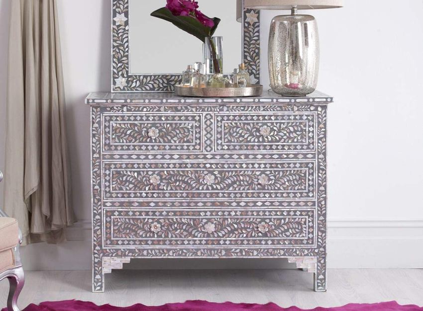Large dressers look best in spacious rooms, as they do not create a feeling of bulkiness, but there are exceptions. For example, if the area of the room is too small, then you can refuse to purchase a cabinet, and instead buy a large chest of drawers.