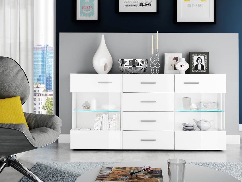 Long dressers in the living room are made in different design solutions