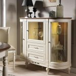 In addition to drawers, these structures can have niches located behind glass doors. A chest of drawers with a display case in the living room is ideal if you need to decorate the room. Almost every family has a beautiful set at home, for which it is not always possible to find a place. As a result, he goes to the closet or closet. The service can be a decoration for any room, so such dressers are very popular.