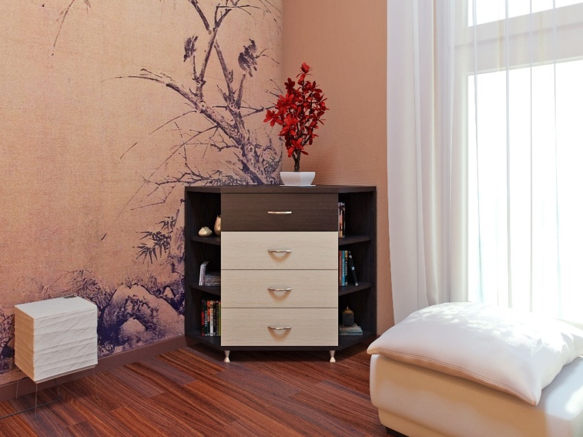 Corner chests of drawers in the living room can be trapezoidal or triangular