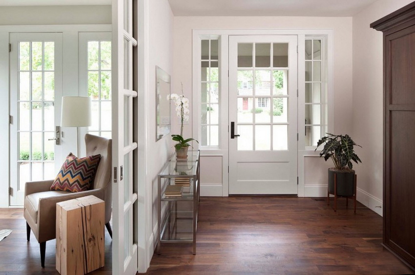 For the manufacture of countertops, you can take glass or durable plastic. A model with a surface made of a paneled door, an old narrow window or cabinet door will look original, as can be seen in the photo of small consoles in the hallway.