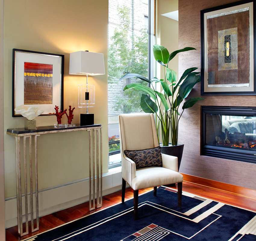Often, narrow console tables are used as shelves where decorative interior items are placed: