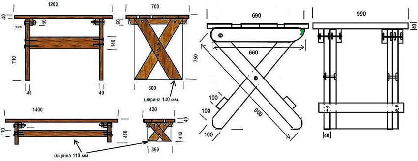 To create a table top and the bottom of the structure, a board with parameters 300x20x10 cm (length / width / thickness) is suitable. It should be cut with a saw so that you get four boards 1.5 m long.