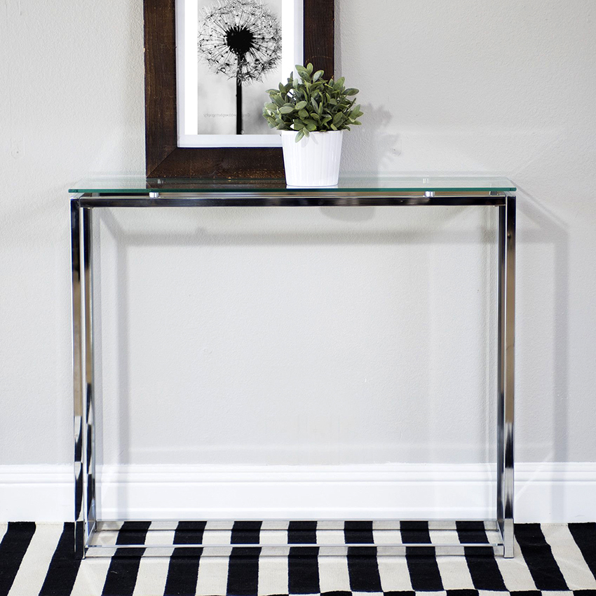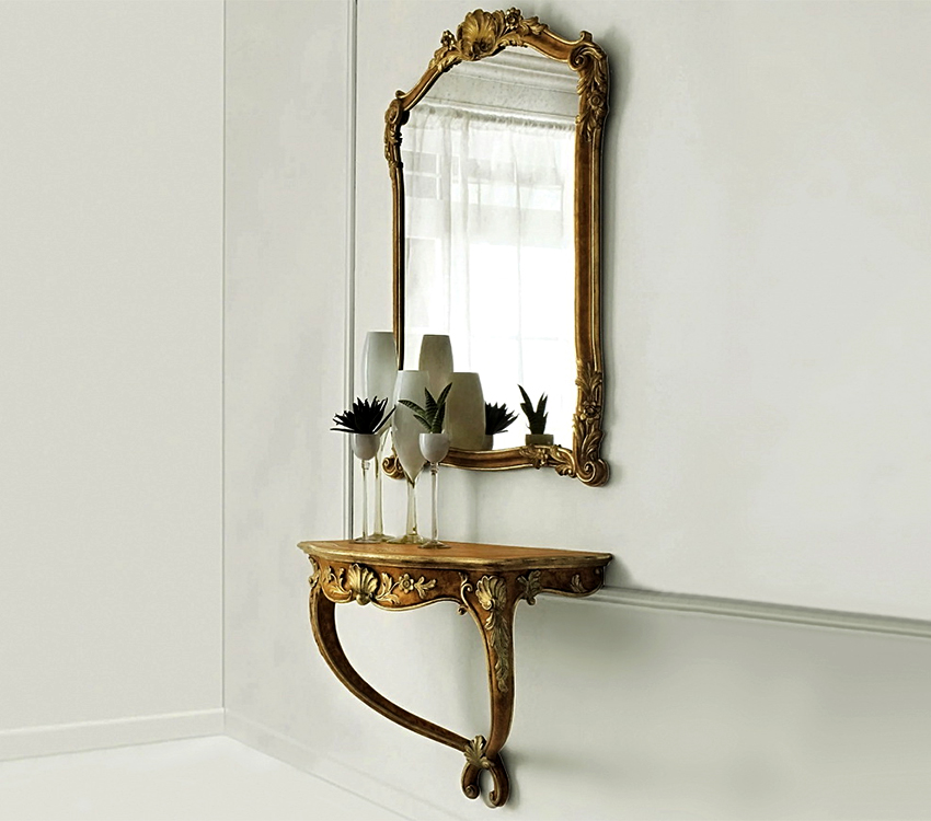 - mirrored console tables (products are decorated with pieces of mirrors or are completed with a full-fledged mirror, which is attached to the wall directly above the structure);