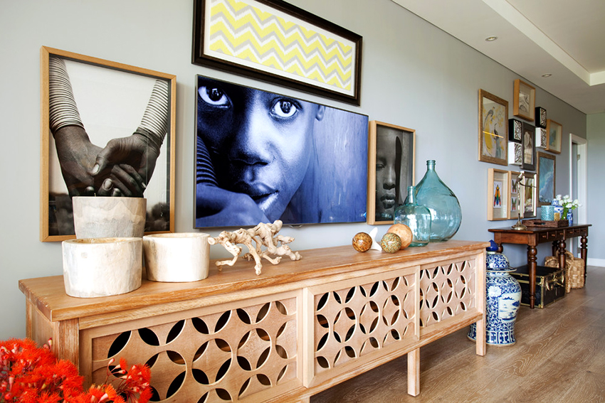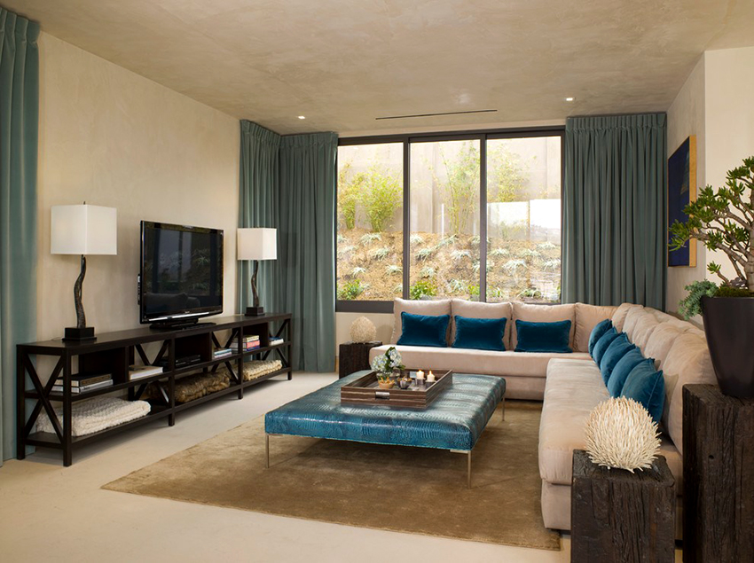Most people use this room for relaxation, for example, listening to music or watching movies. The console is perfect for placing equipment. For the installation of the TV, products of a hanging type or a structure in the form of a cabinet are usually used.