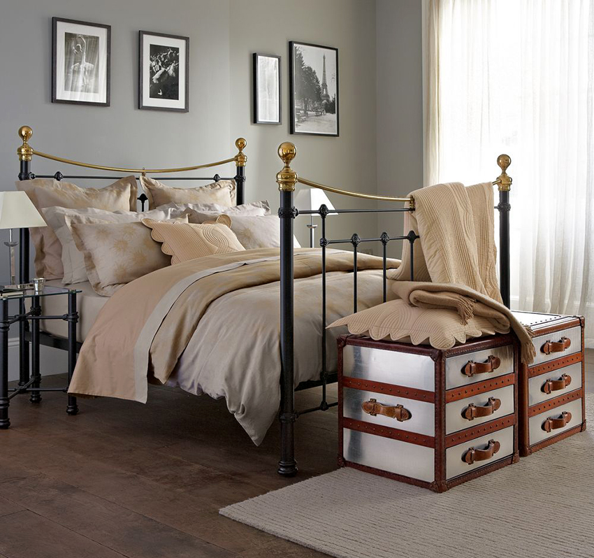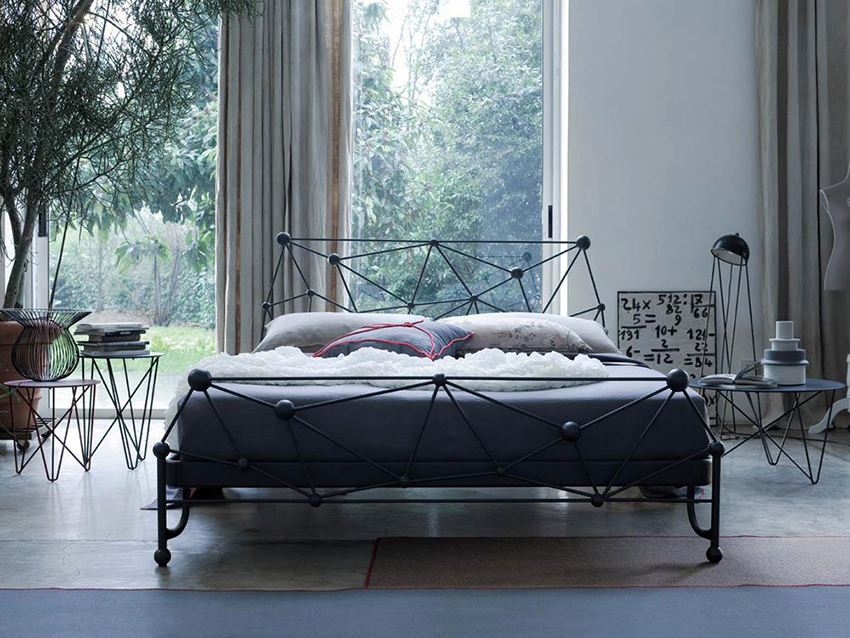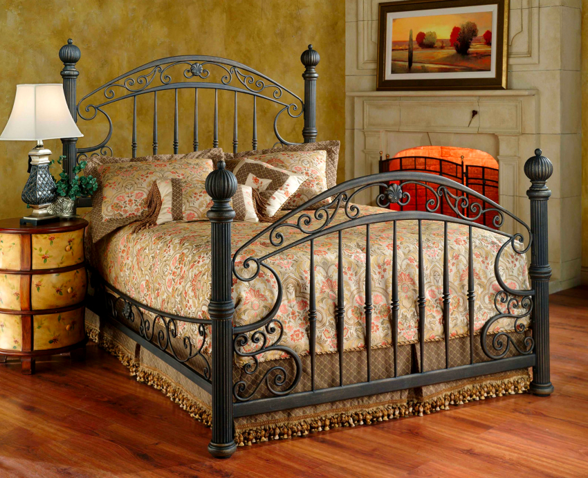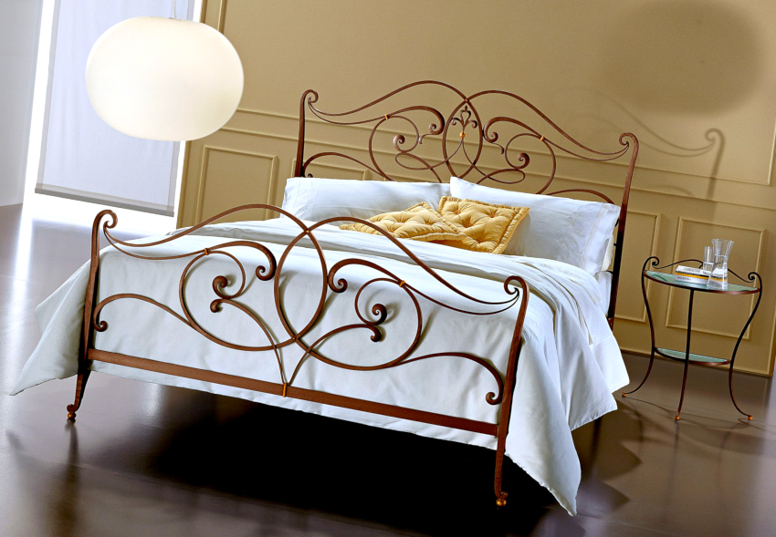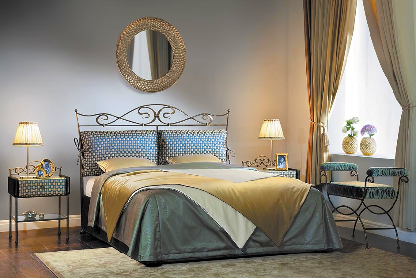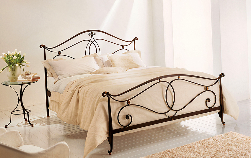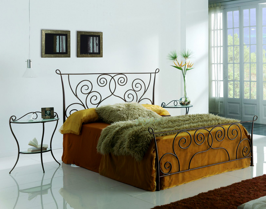 Forged furniture goes well with glass, wood, stone. But this "neighborhood" must be properly organized. Over-saturation with one of the materials can lead to clutter, excess, burdening the situation. A wrought-iron bed is a large and expressive piece of furniture - in the selection of other elements it is better to follow the rules of minimalism.
