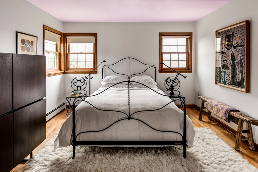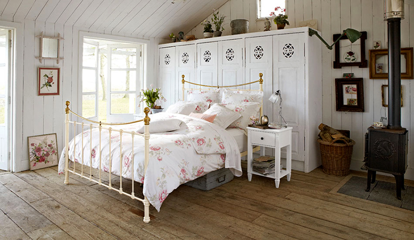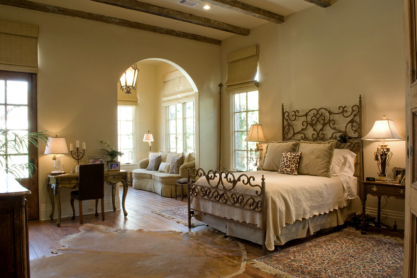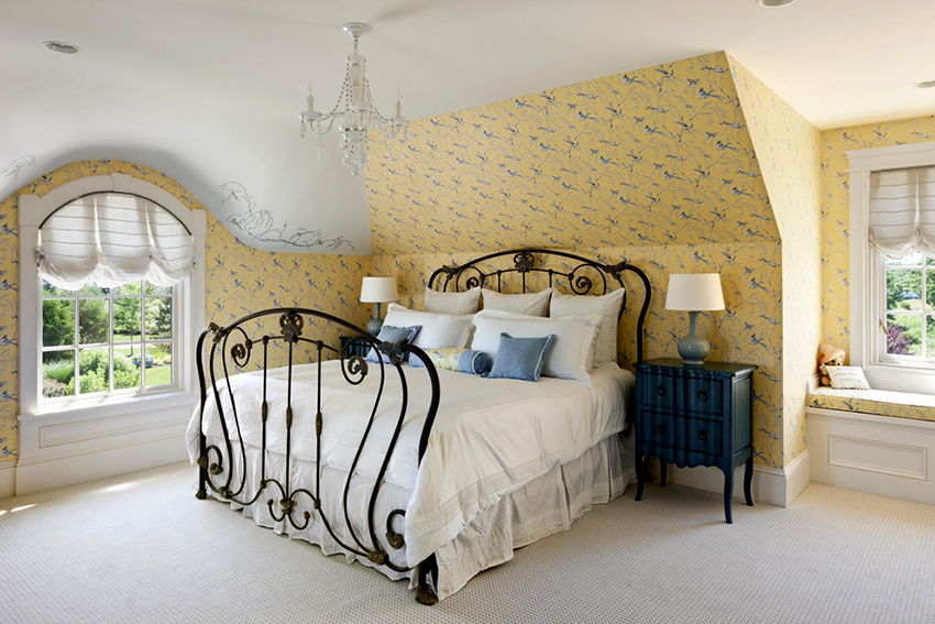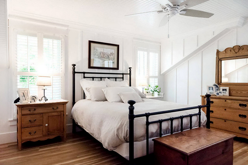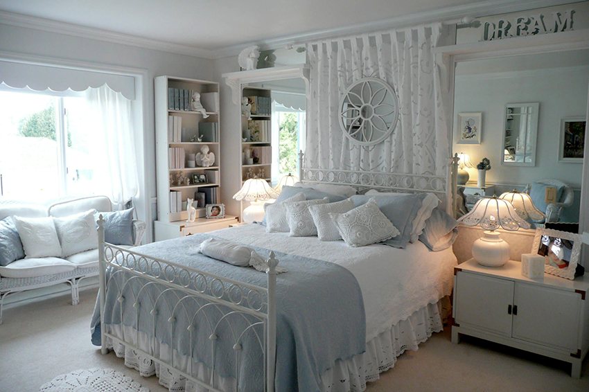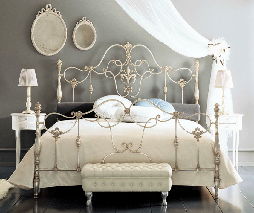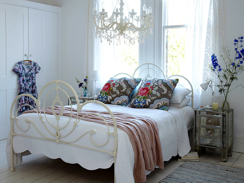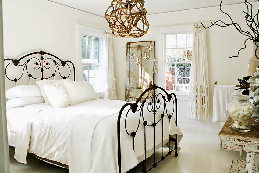 If the design of the bedroom seems dull, expressionless, a white wrought-iron bed will correct the situation.