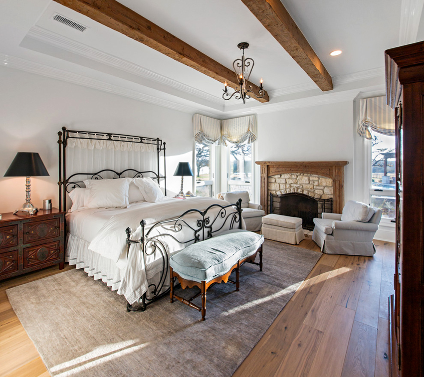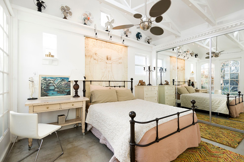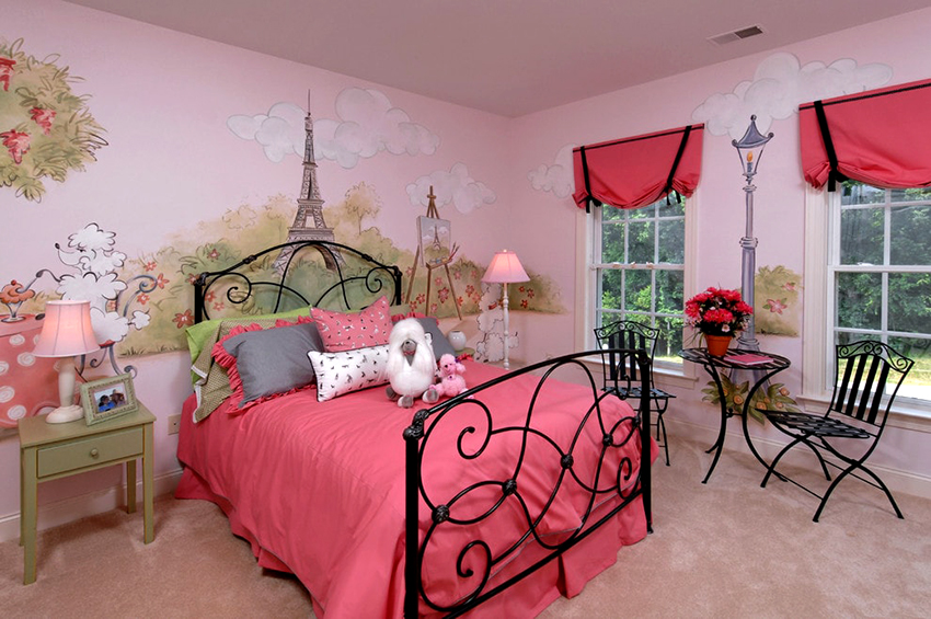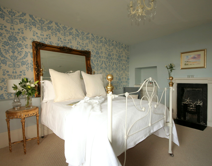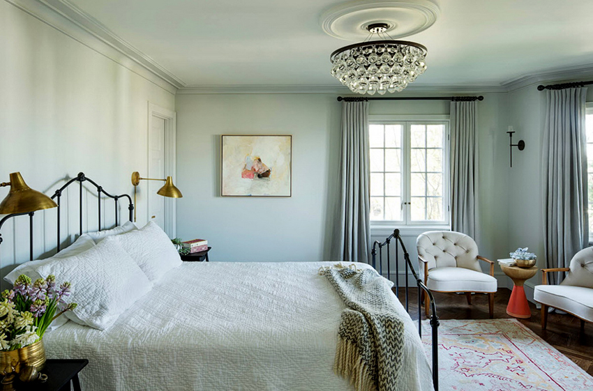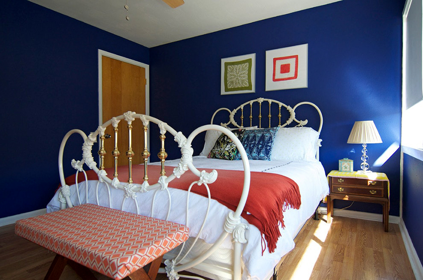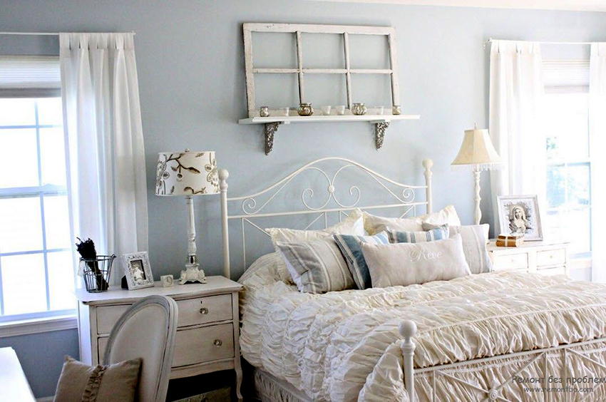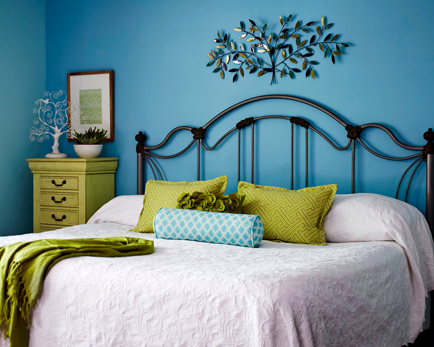If the design of the bedroom seems dull, expressionless, a white wrought-iron bed will correct the situation.