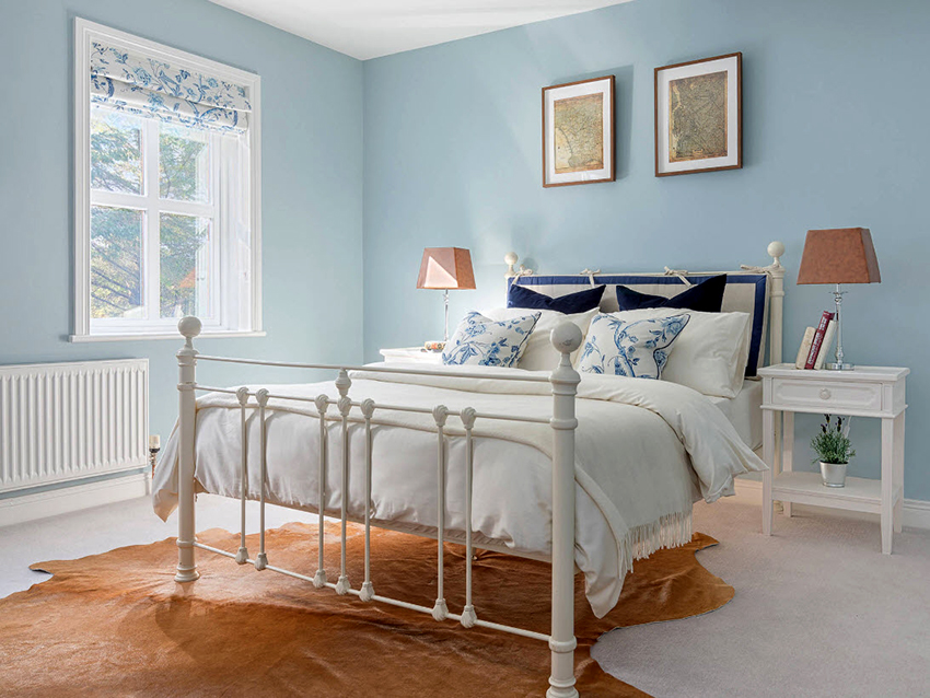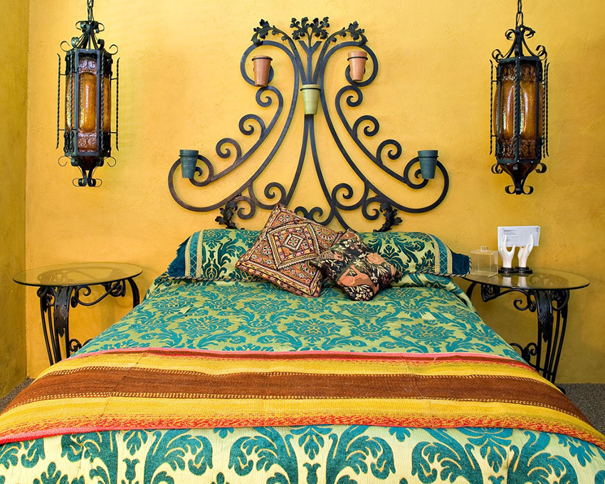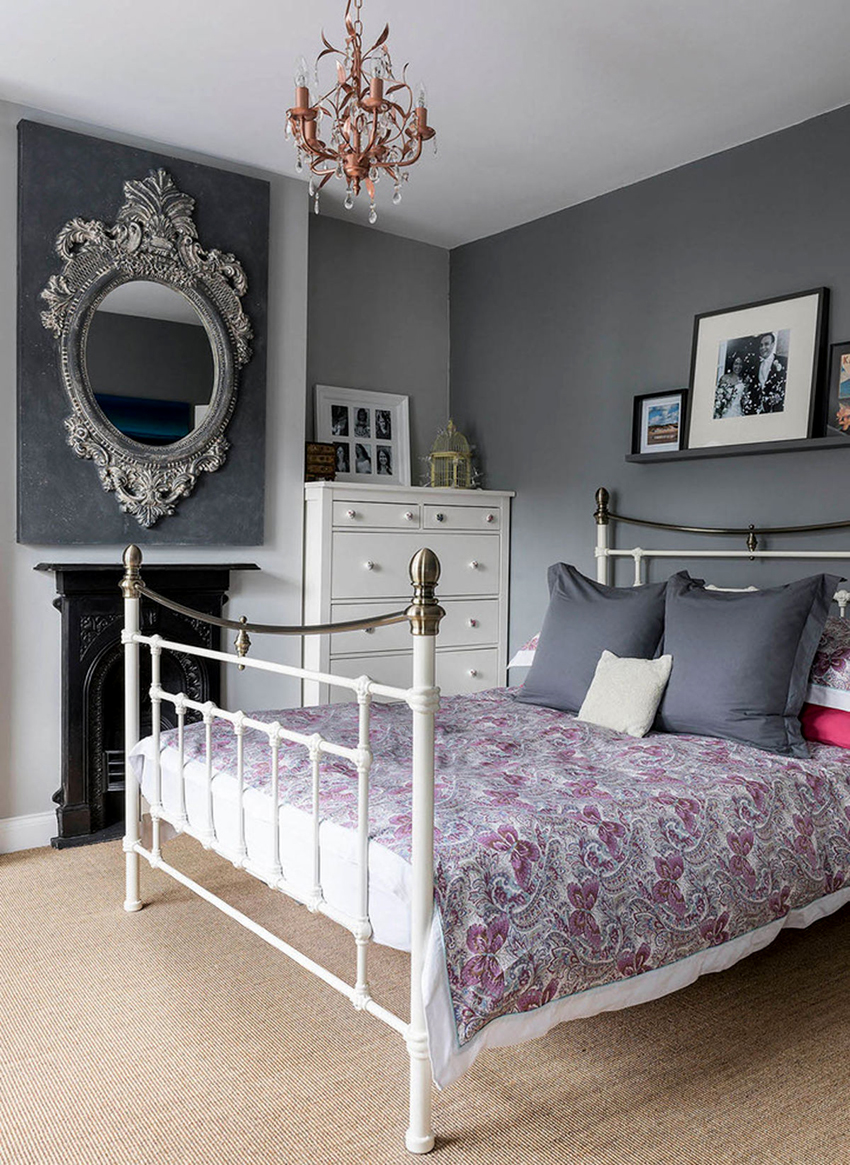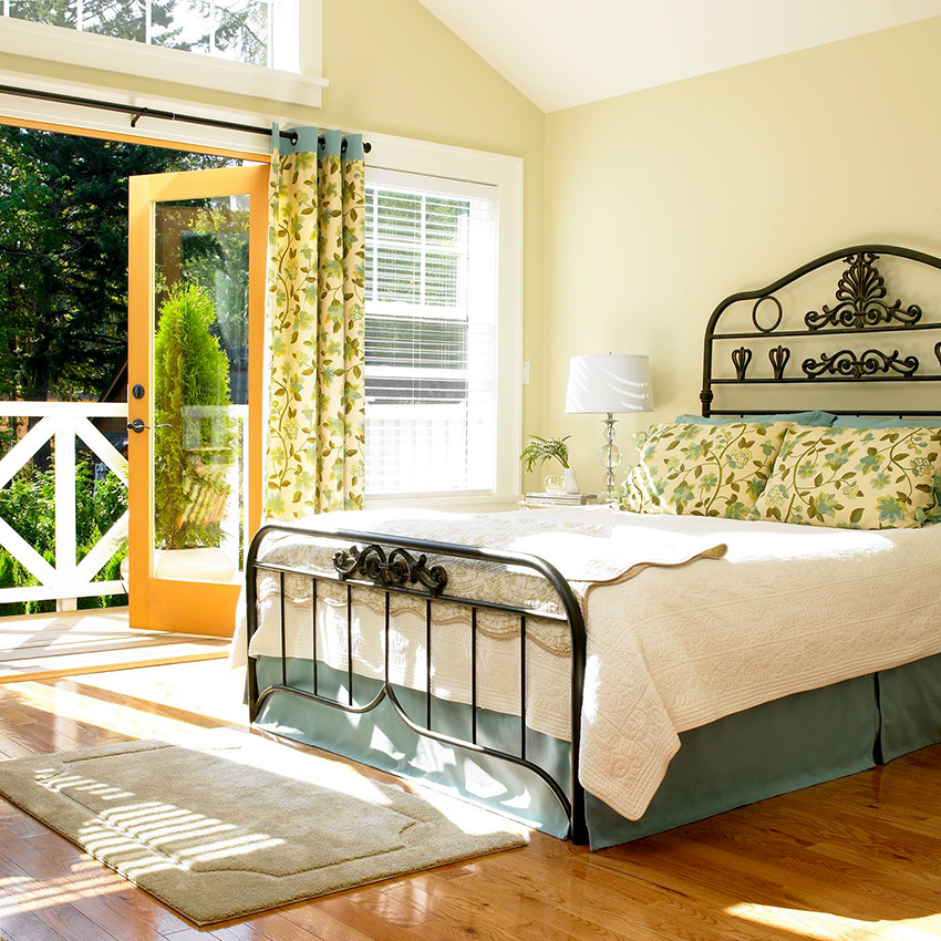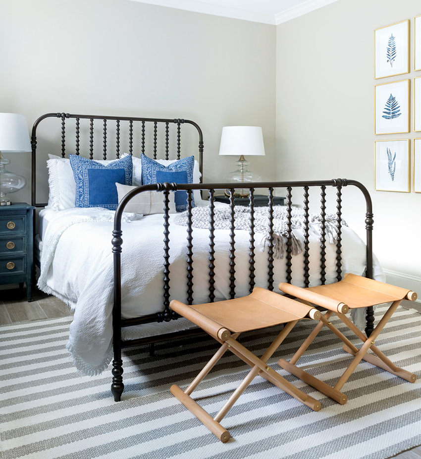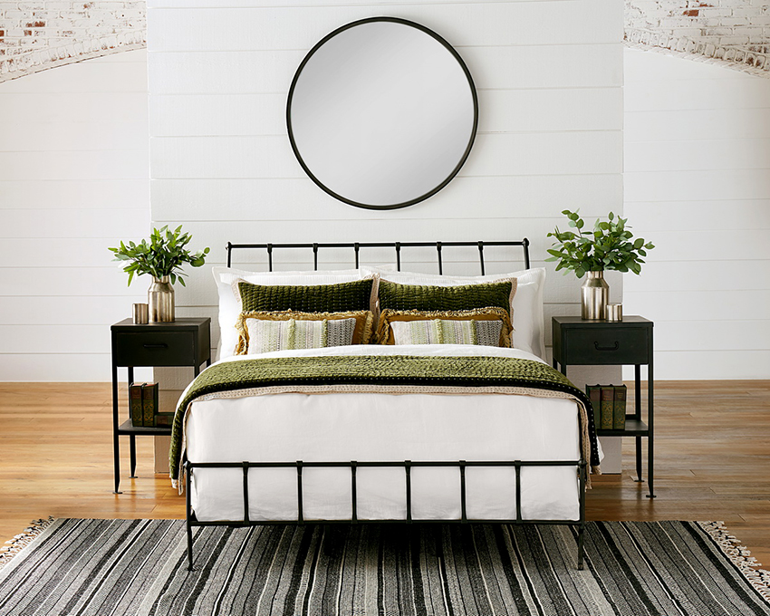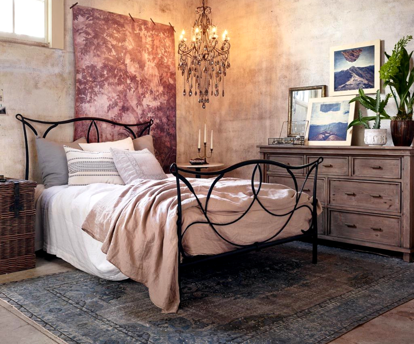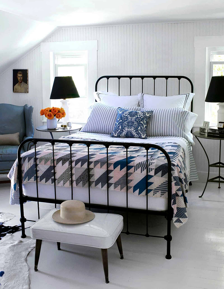 In order for a bedroom with a wrought-iron bed to be cozy, you must: