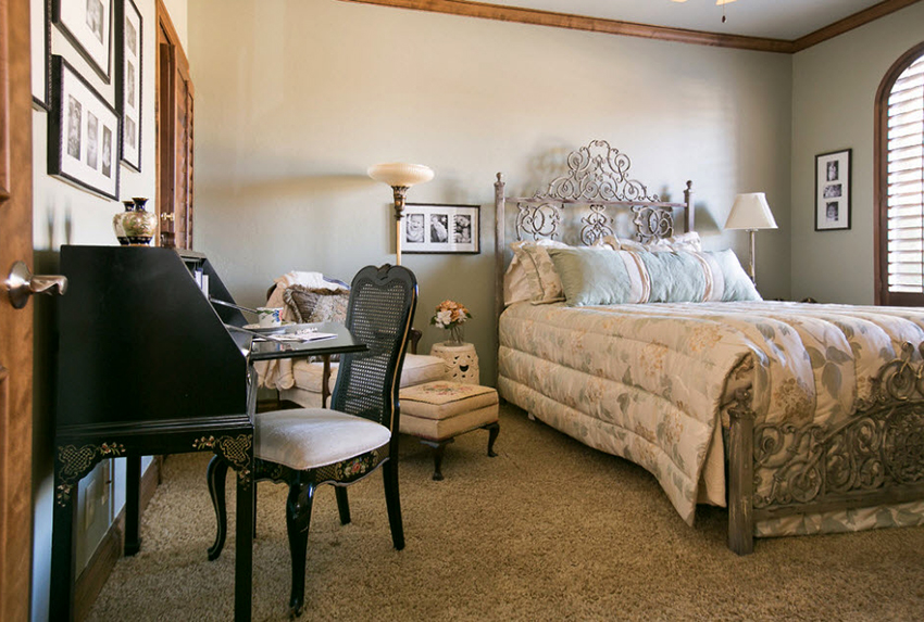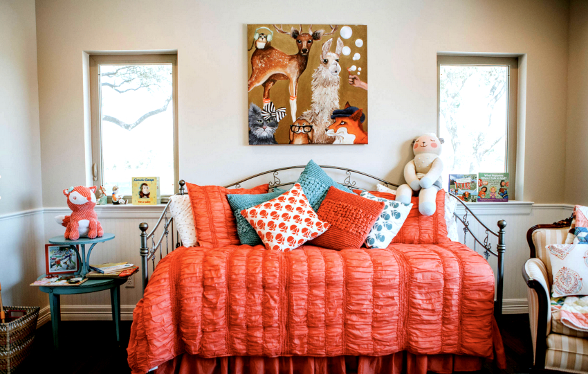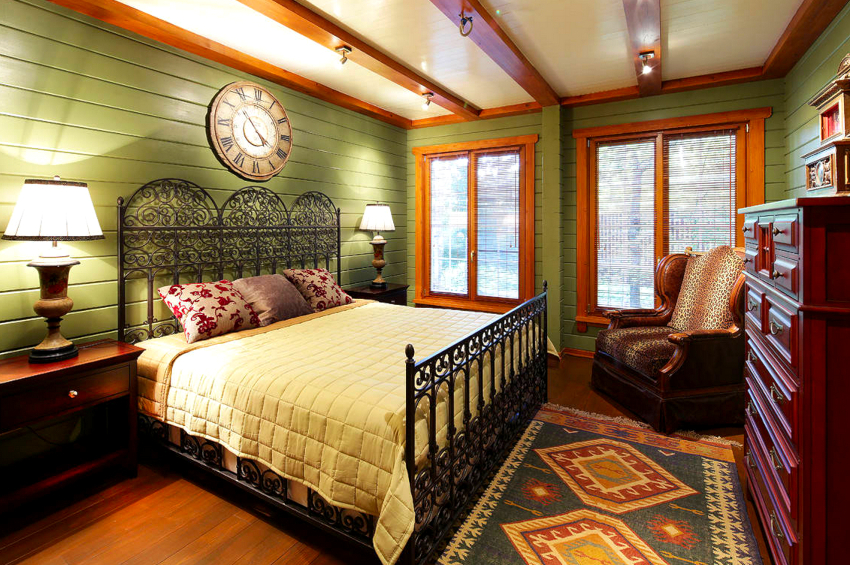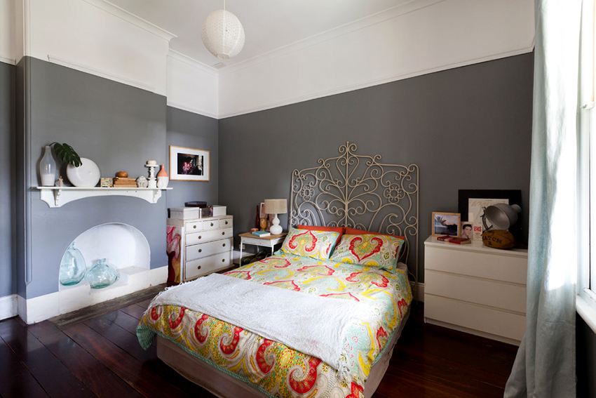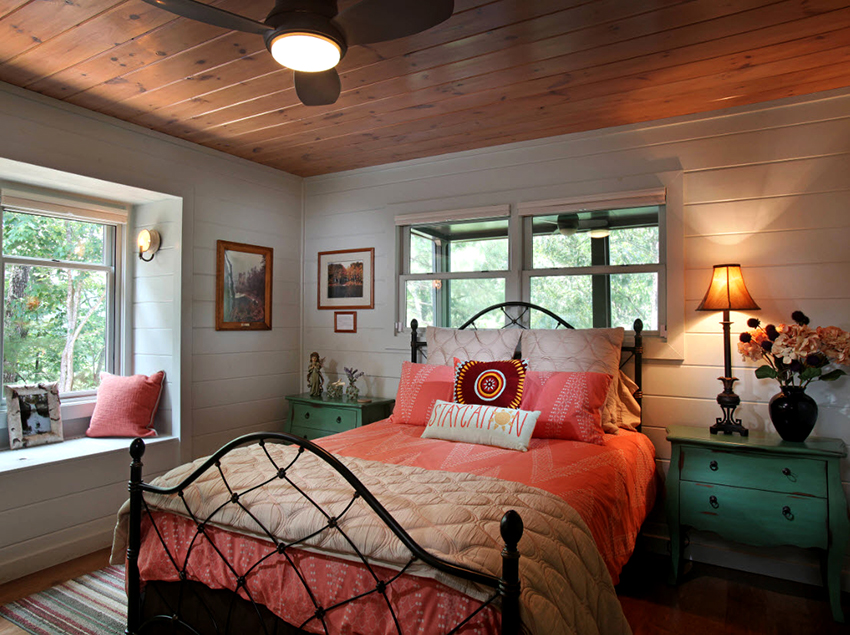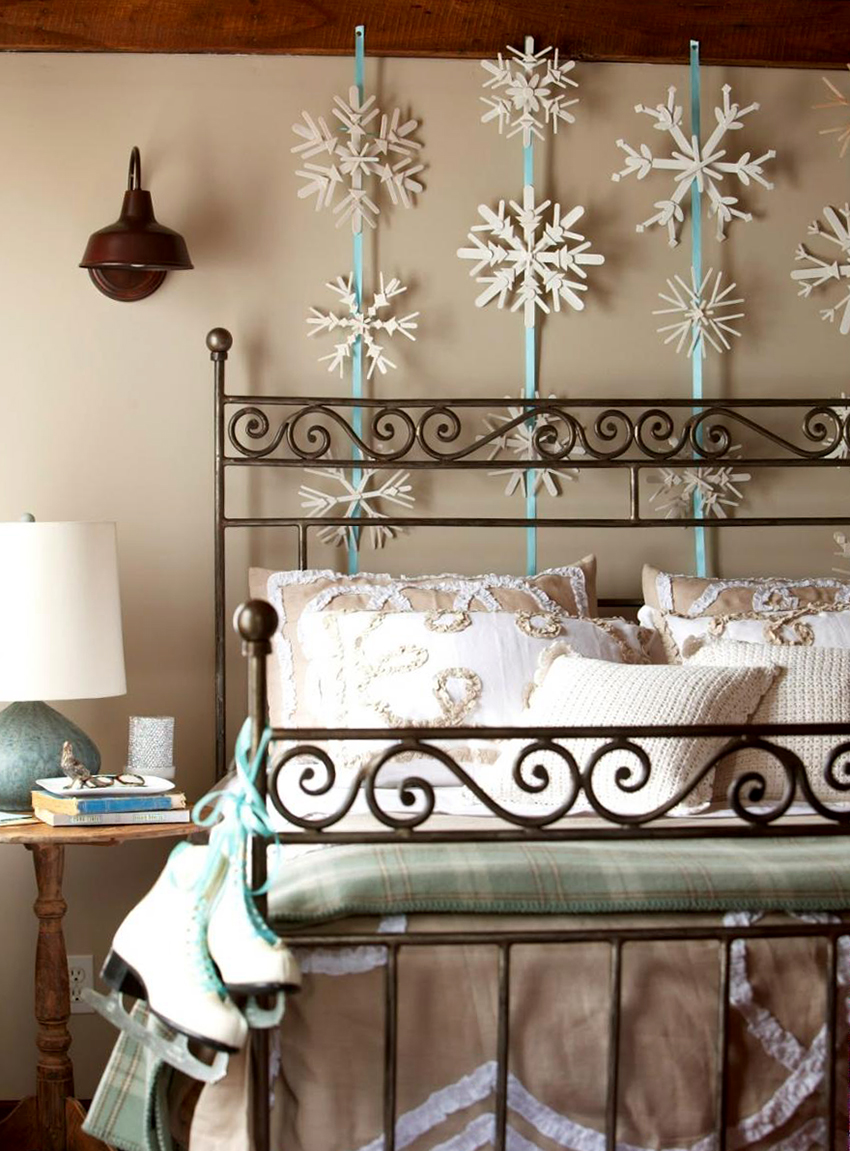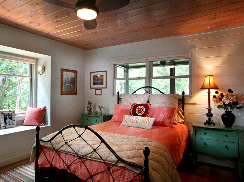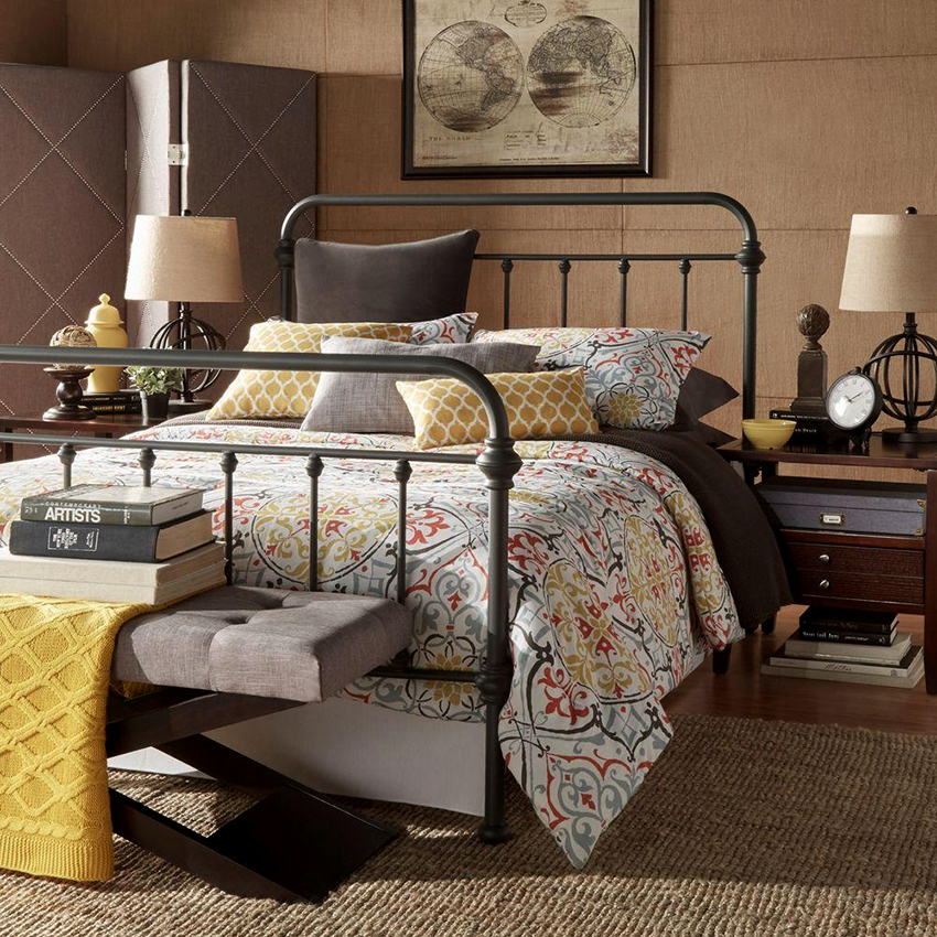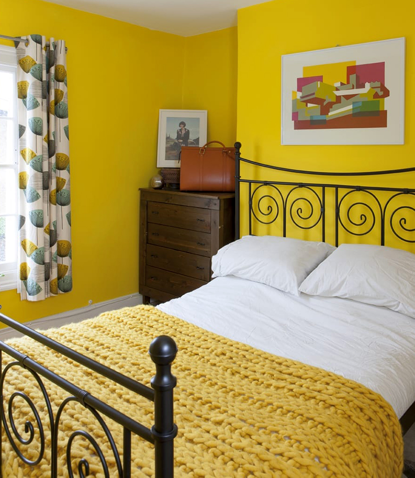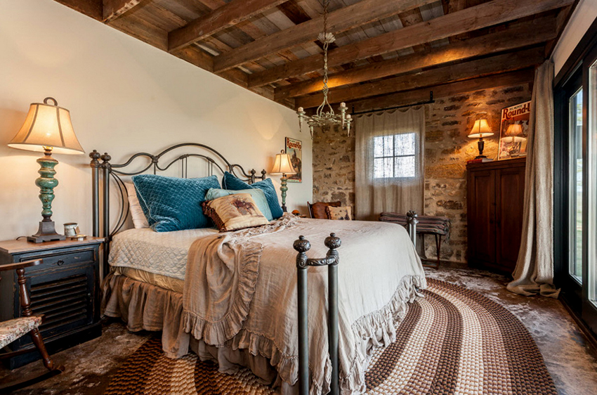 In order for a bedroom with a wrought-iron bed to be cozy, you must: