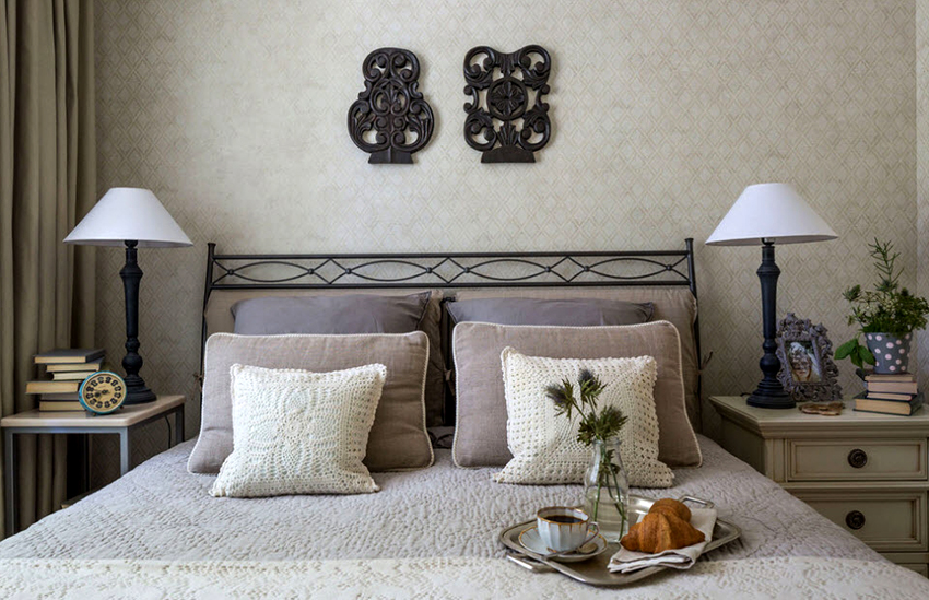 If decorativeness, expression of style is of paramount importance, then you should choose a bed with an iron back without soft upholstery. Open forged headboard elements will set the tone, bring romance, restraint, sophistication, lightness, or, conversely, solidity (depending on the chosen style) into the bedroom space.