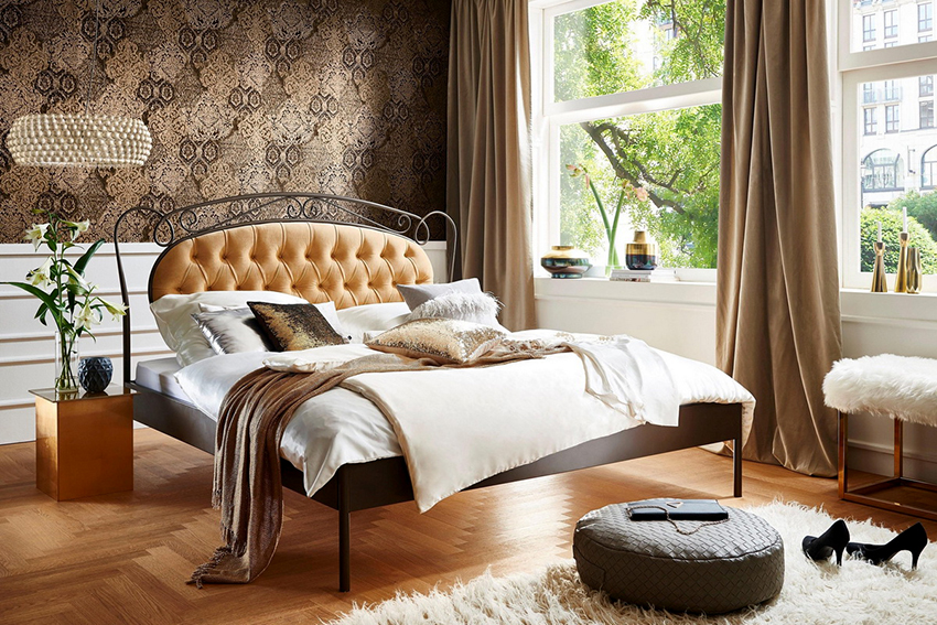 There are no restrictions on the use of metal furniture associated with the way the bedroom is decorated.Forged beds are appropriate in the interior of any style. For certain areas, such as high-tech and loft, such furniture is even a must. Metal beds look harmonious in bedrooms decorated in a Scandinavian direction, in ethno, Provence and modern styles, in luxurious baroque and, of course, classics.