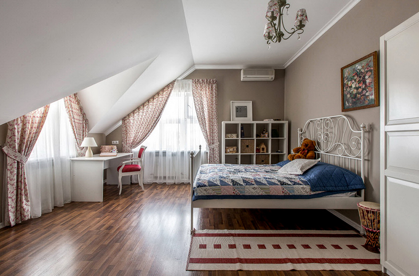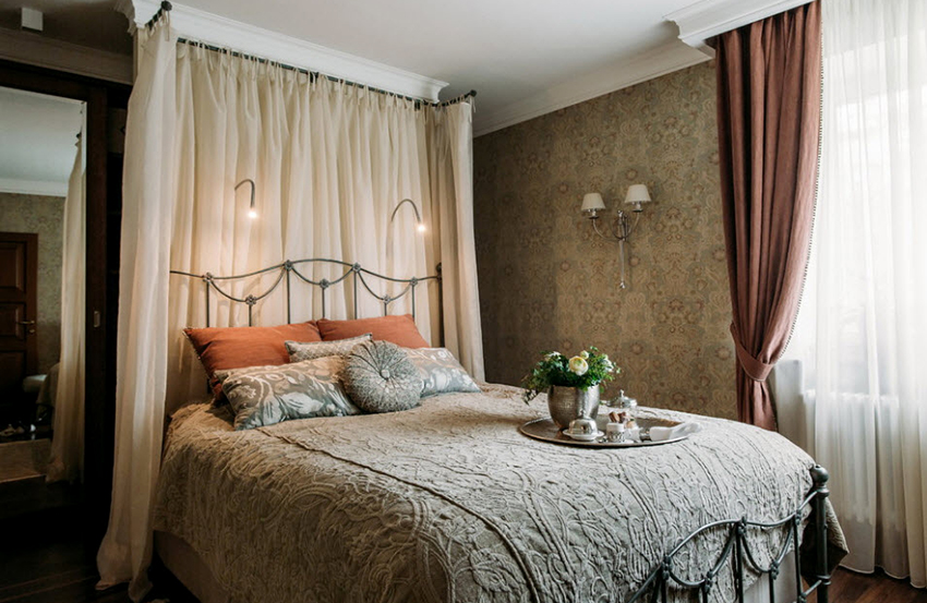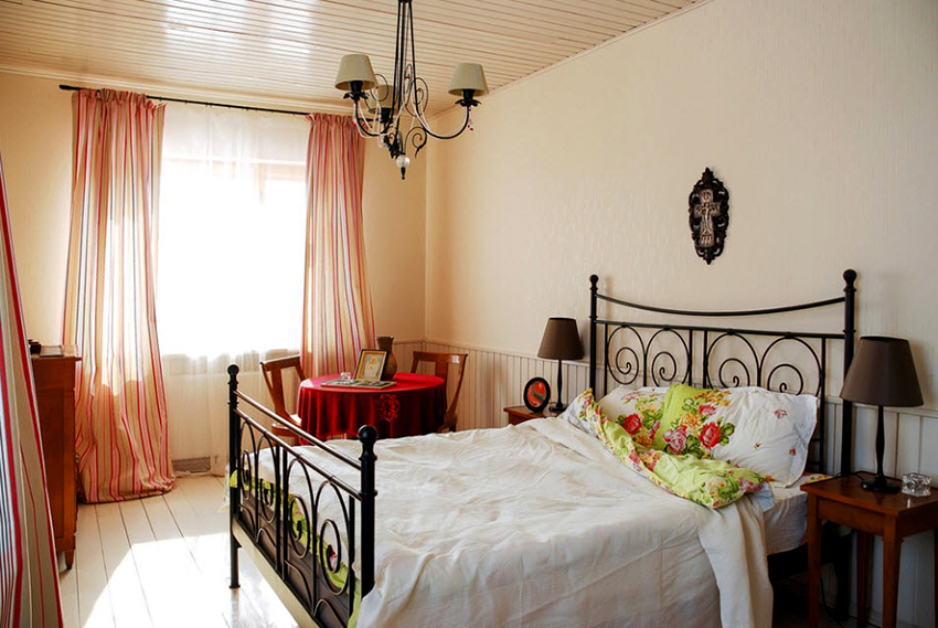The owners are especially proud of the original wrought-iron bed made to order. She gives the bedroom charm, splendor. Such models are exclusive, produced by hot forging. The metal is shaped by hand using special tools. Small workshops are engaged in the manufacture of such copies.