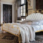 A bed with a soft headboard in a white wrought-iron frame will appeal to connoisseurs of country and retro. Such models contribute to creating an atmosphere of coziness and comfort in the bedroom. A wrought-iron structure with an additional frame for a canopy will designate an area of intimacy and romantic privacy.