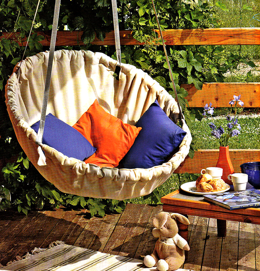 - Comfort and quality rest. It is pleasant to be in a hanging chair at any age. It is no less comfortable than in a chaise lounge, but such furniture takes up much less space than soft counterparts.