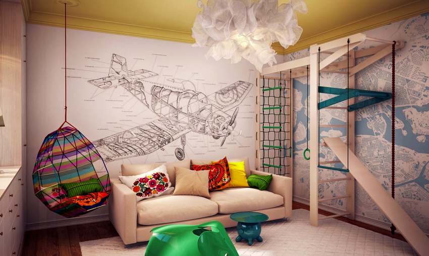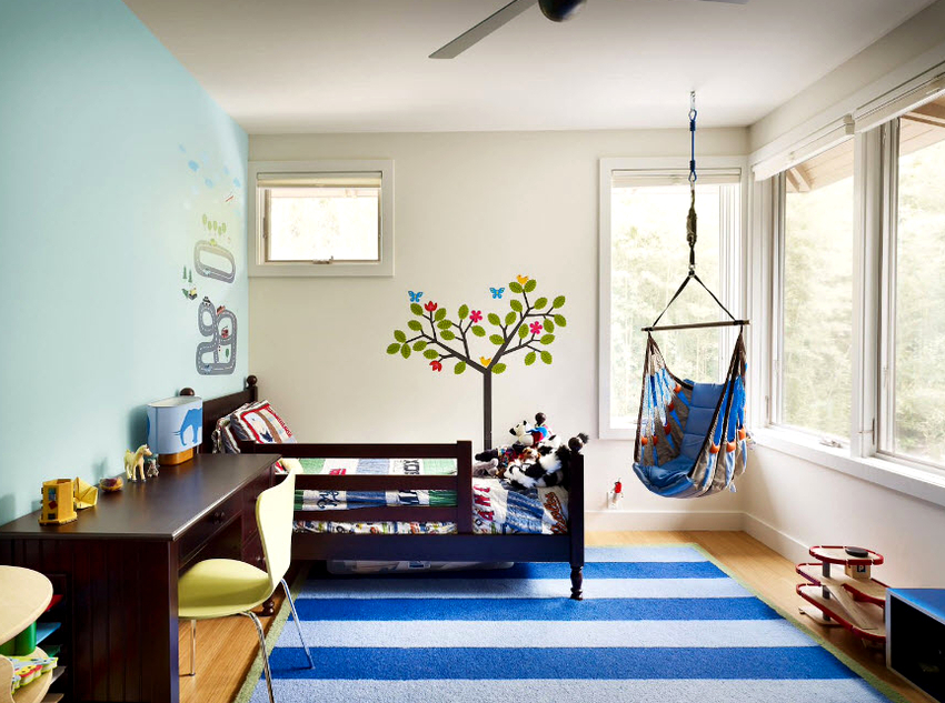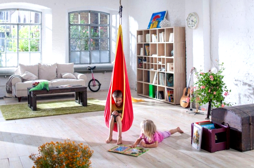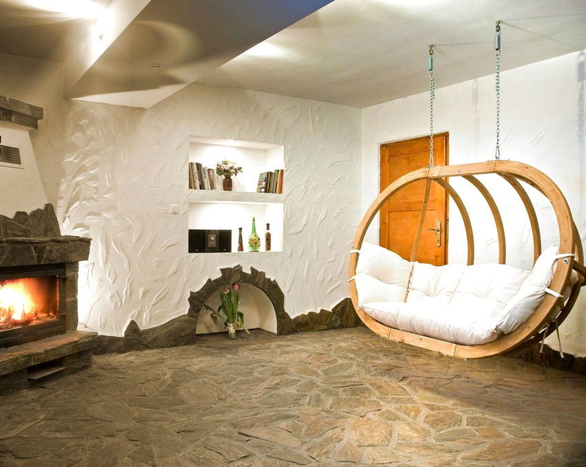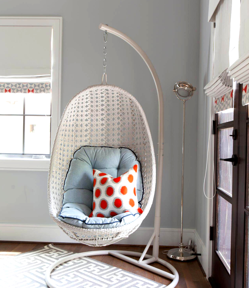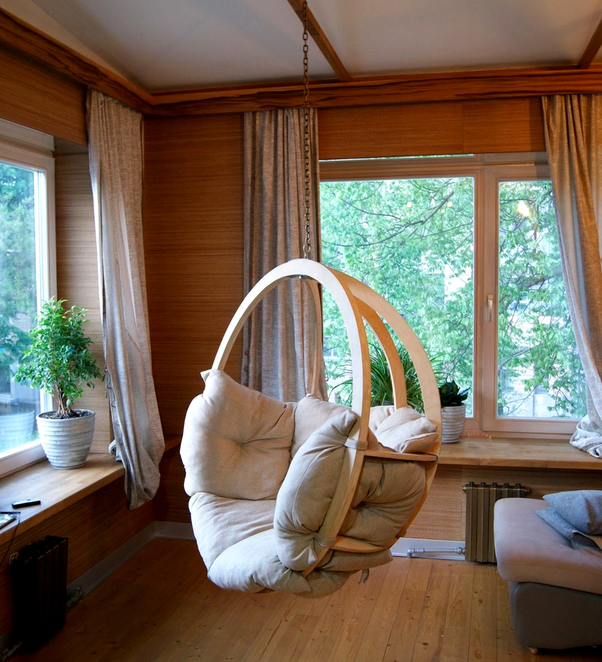 It is better to plan the interior of a room with a hanging chair even during the renovation process.