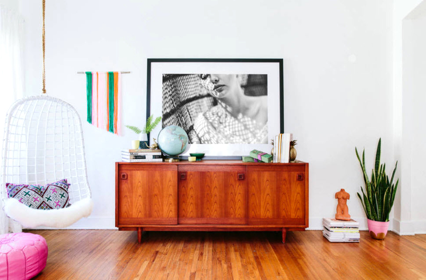 Helpful advice! The armchair on the floor bracket will allow you to change the decor in the room at any time as you wish.