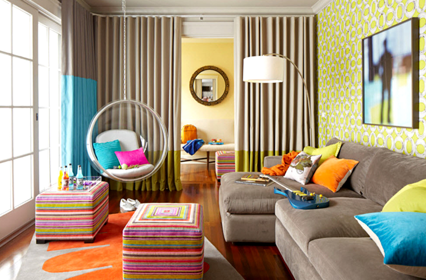 - Living room. In this case, the chair should match the color of the furniture already installed here. A hanging chair on a chain looks especially beautiful in a living room with a high ceiling.