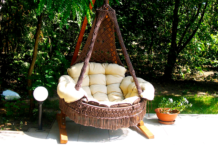 The main advantage of a floor-standing nest chair is mobility and ease of installation, because the finished product is simply installed in any suitable place, and if necessary, it can be safely moved to where it is needed. This is especially true in the country or in a private house, when the armchair in winter serves as a cozy corner in the living room or bedroom, and in the warm season it is located in the shade of trees.