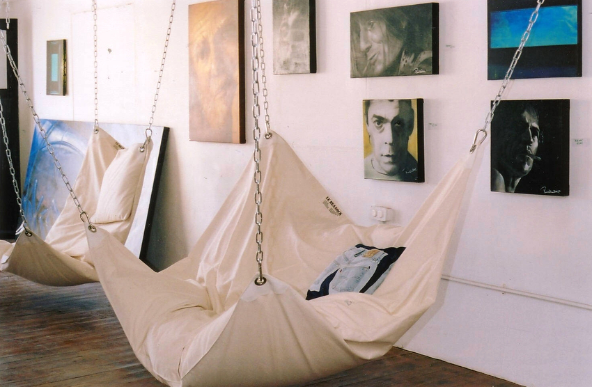 Initially, the model was designed for children, but over time it has gained popularity among adults. The product is mounted on a ceiling hook or mounting brackets that come with the product, which allows installation not only on the ceiling, but also on the wall using a special brace. The hammock is easy to machine wash and the pillow is simply wiped off with a damp cloth. The main advantage is the low price (from 2200 rubles).