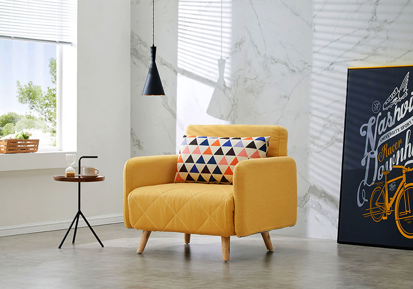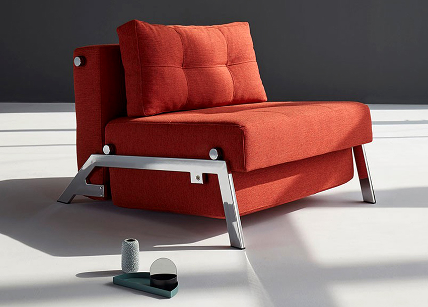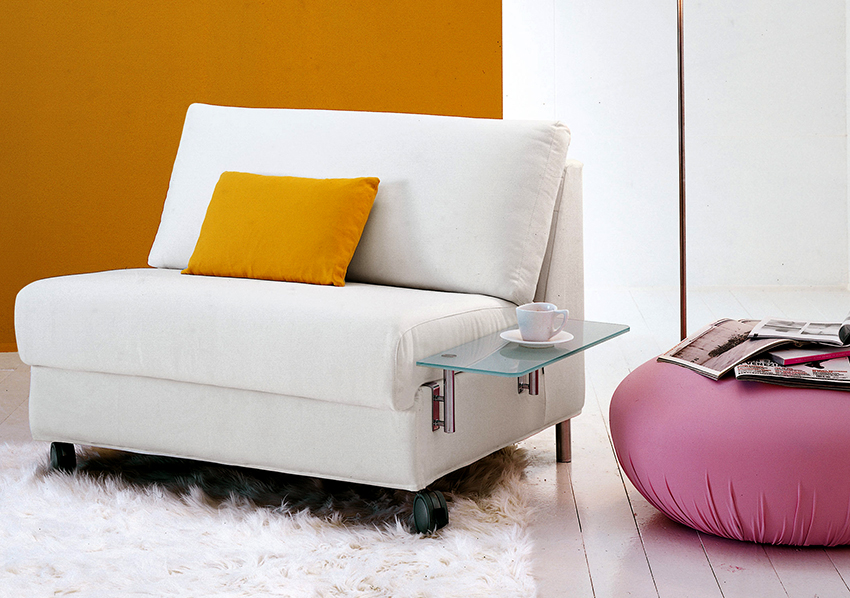 A chair with armrests is less compact, furniture looks more bulky, and its presence in the interior becomes dominant and sometimes intrusive. At the same time, a narrower armchair-bed without armrests is much more compact and fits perfectly into almost any interior.