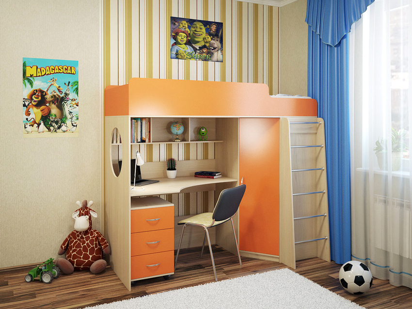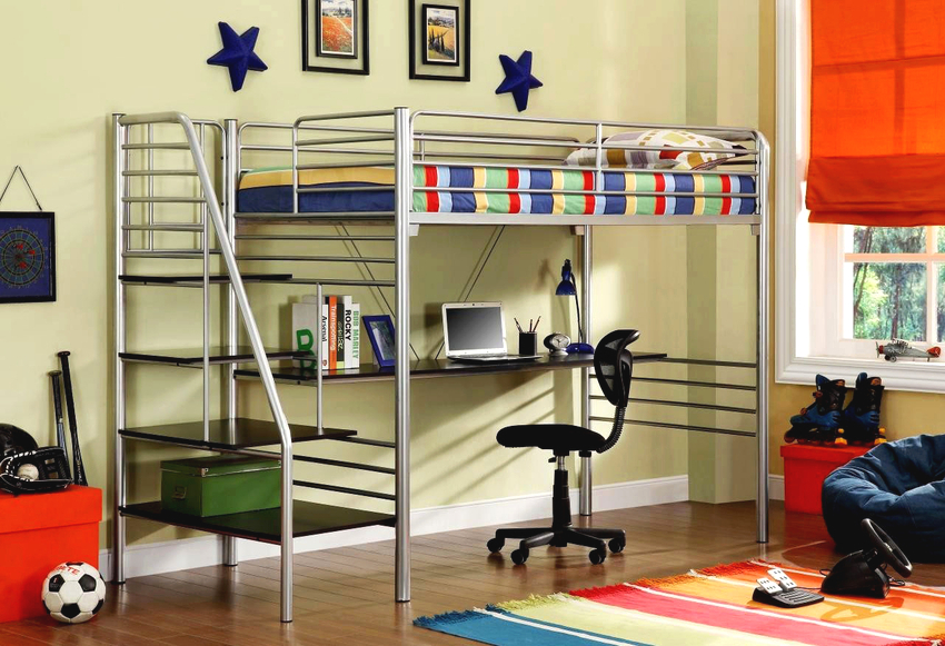 When choosing a loft bed with a working area, it is necessary to take into account its appearance and the design of the bedroom, as they must be in harmony