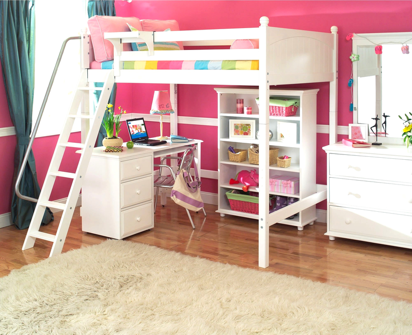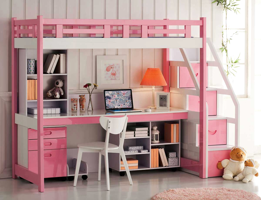 For a teenage girl, the loft bed will become not only a place to sleep, but also a favorite area for relaxation and entertainment.