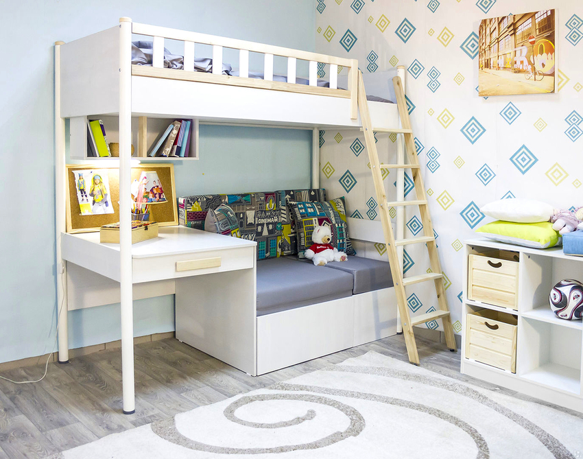 Useful advice! Choosing the option of a bunk bed with a working area, it is better to choose a model with removable lower modules. This will make it possible to rearrange them over time, because with age, the child's taste can change.