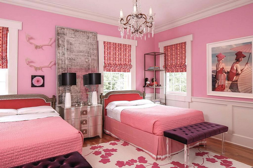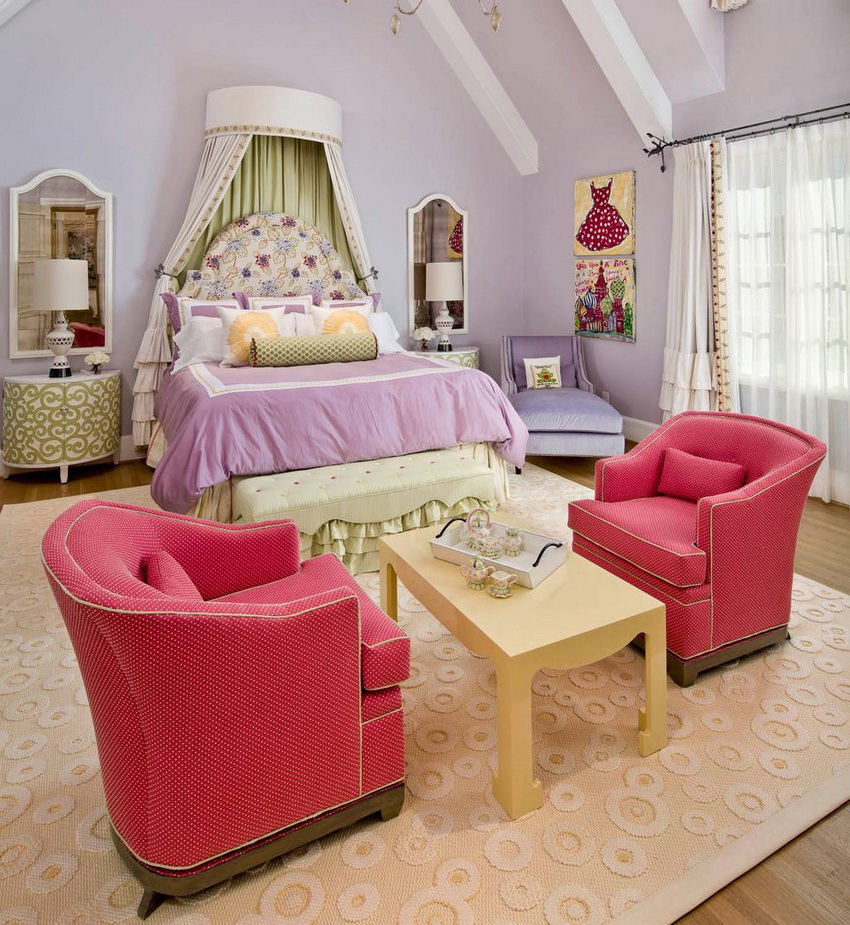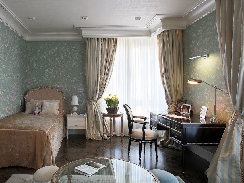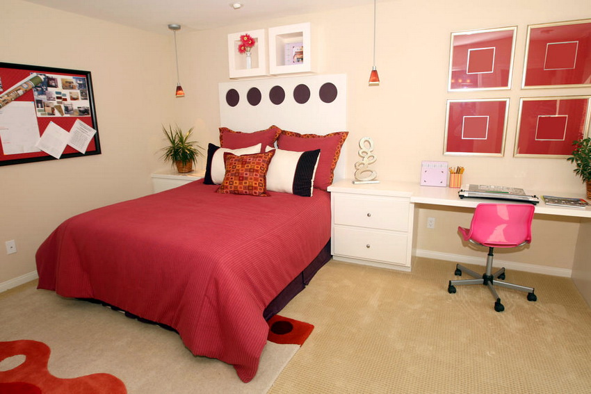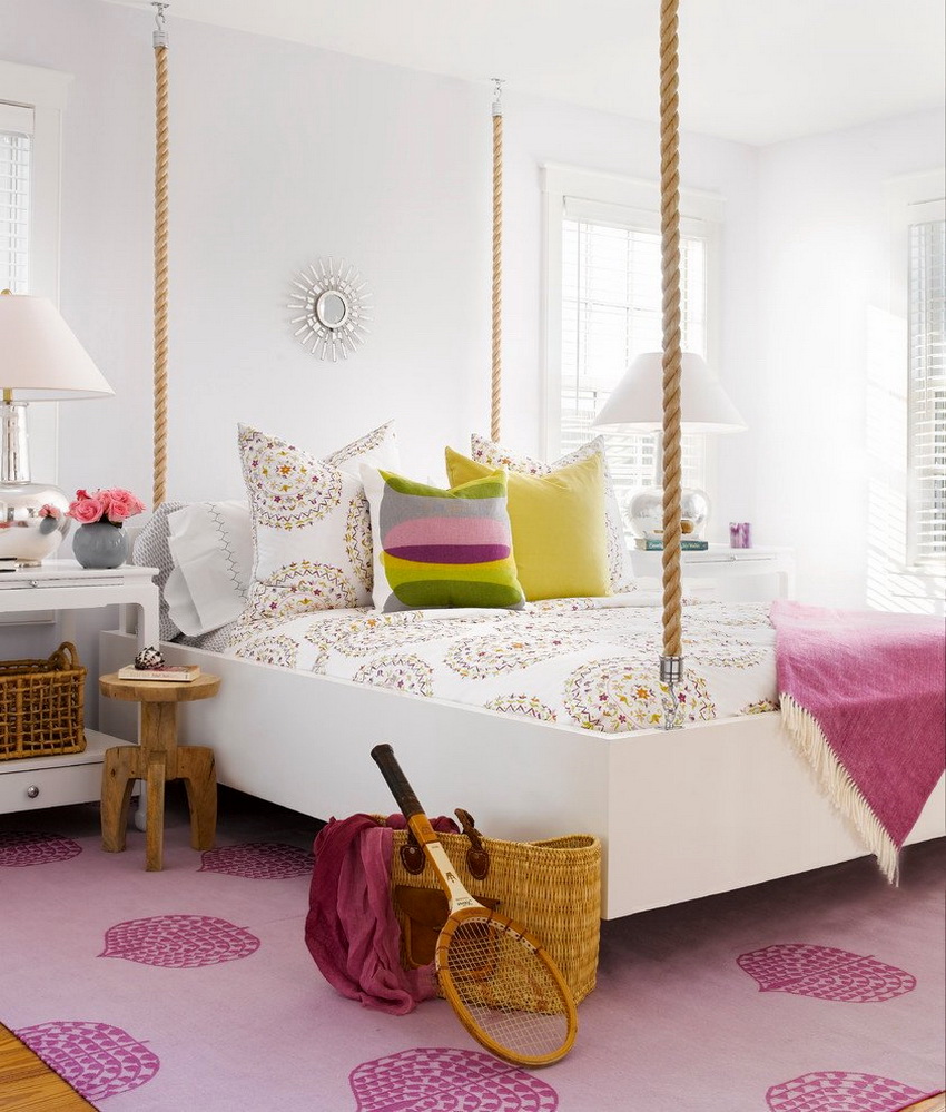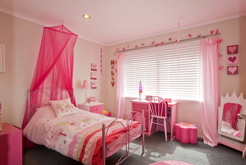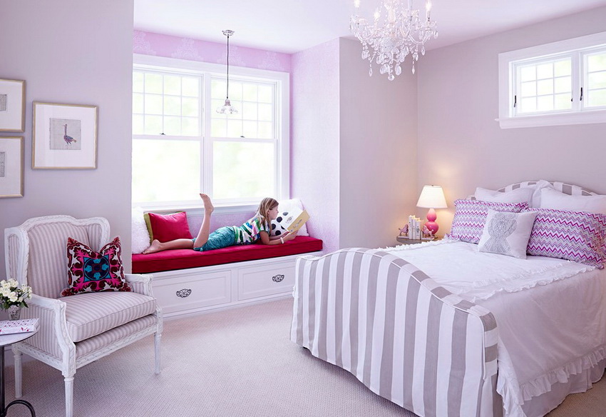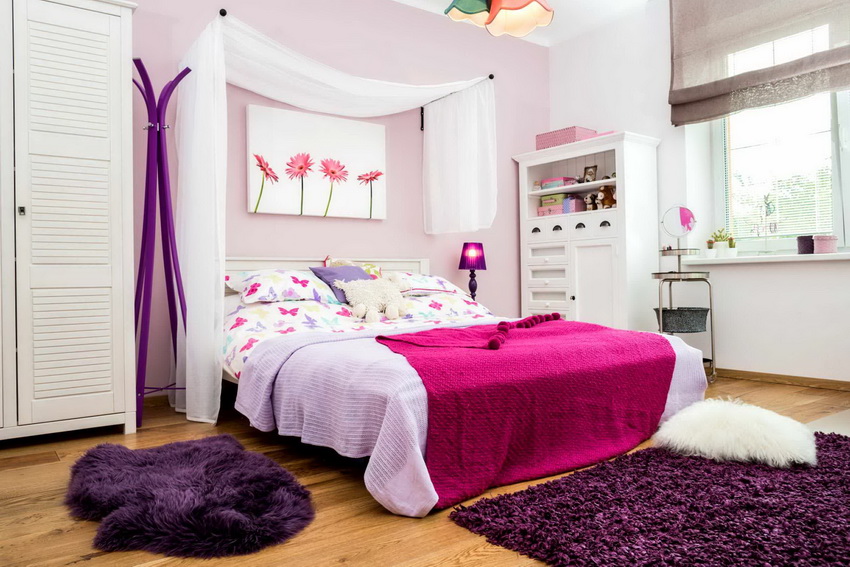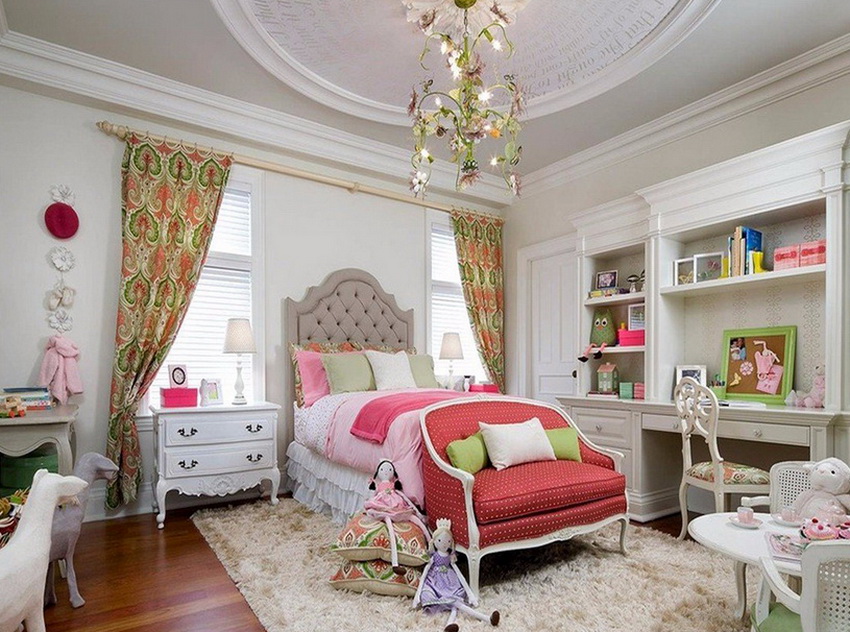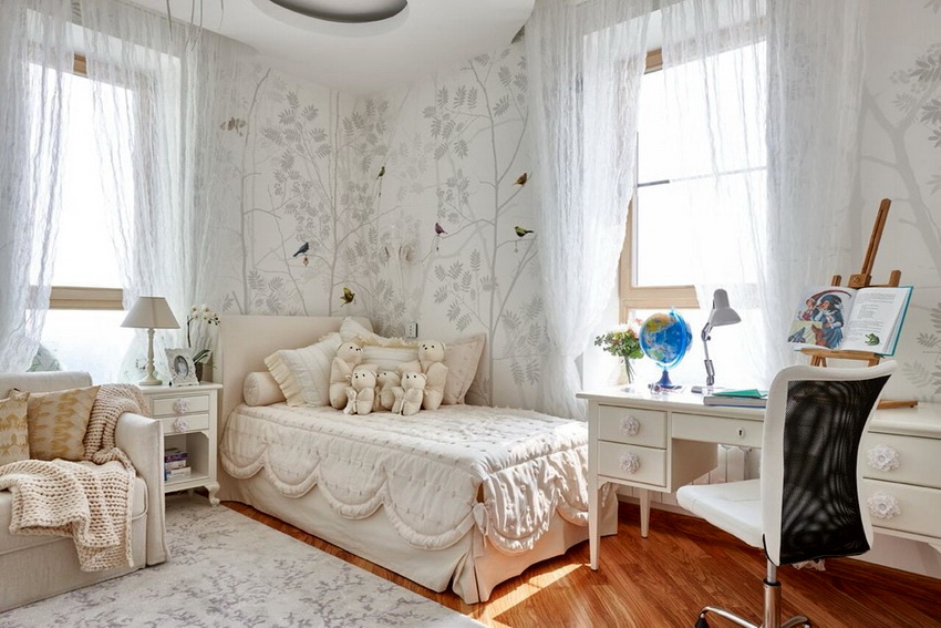 The type of bed is determined not only by the personal preferences of the hostess, but also by the size of the room. If the room is small, you can equip a multifunctional loft bed with many drawers, shelves and shelves.A writing desk must be present without fail.