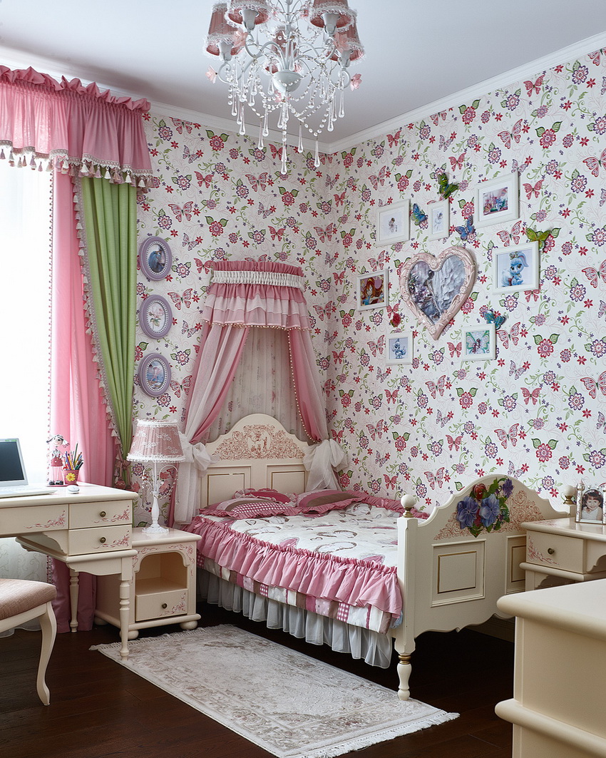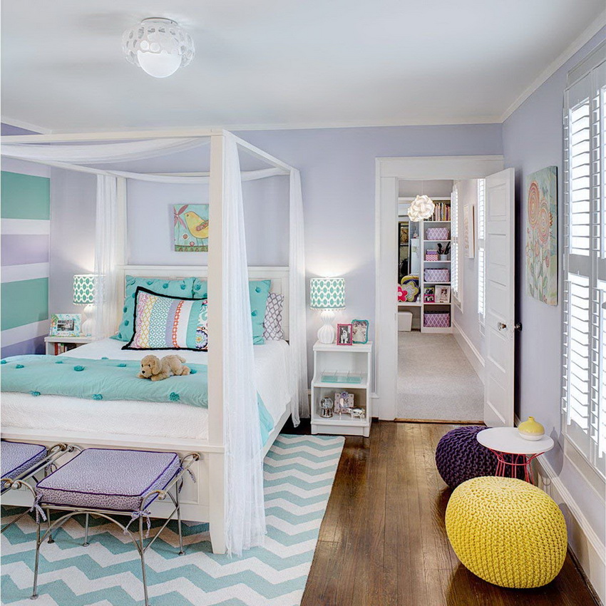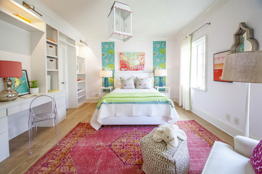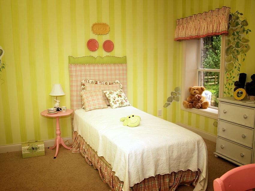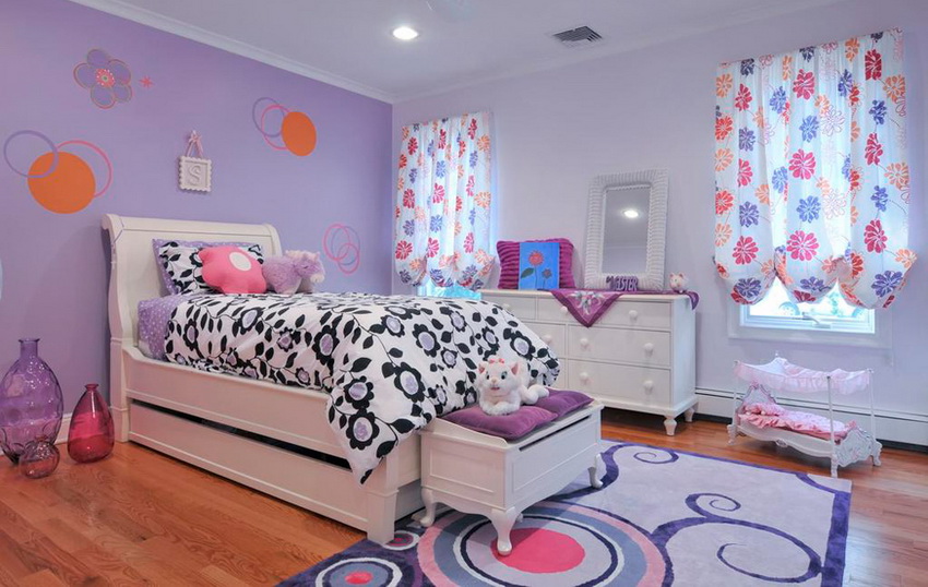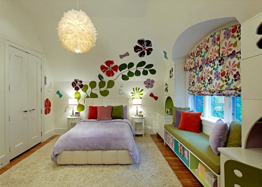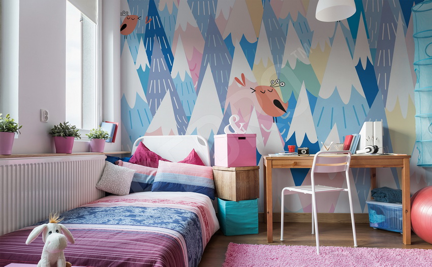 Shades of yellow, peach, pistachio and purple are very popular among girls of school age. Here you can use both muted tones and bright, saturated blotches.