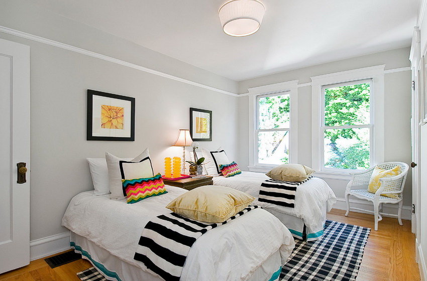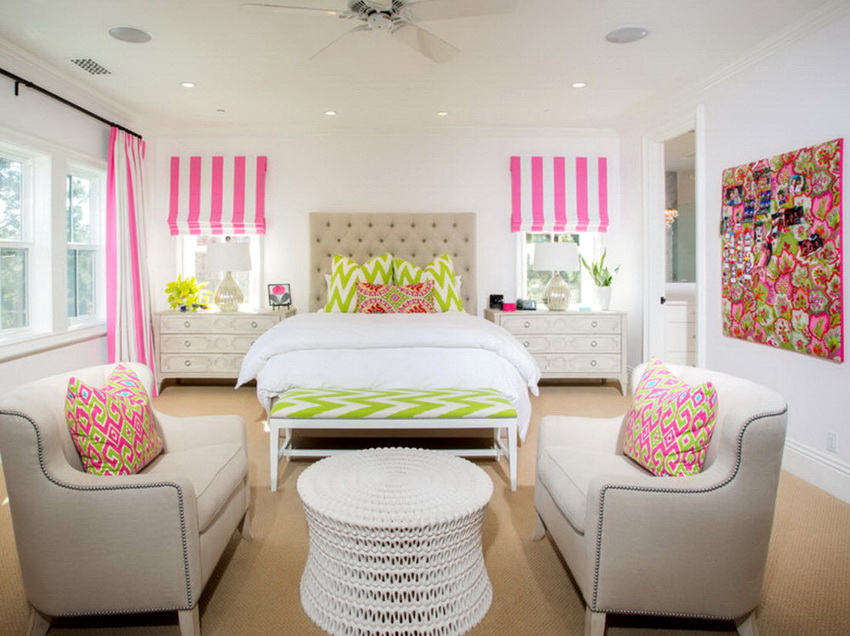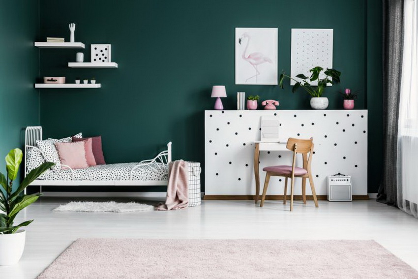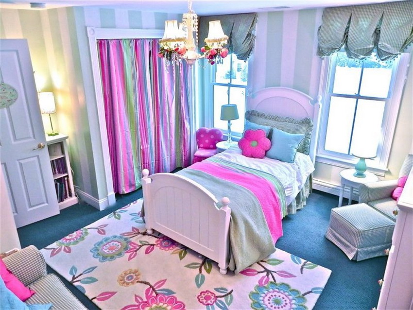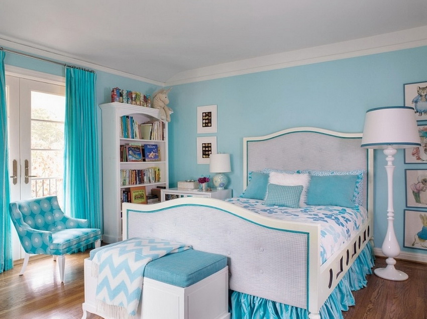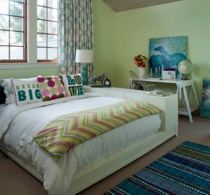 Shades of yellow, peach, pistachio and purple are very popular among girls of school age. Here you can use both muted tones and bright, saturated blotches.