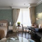 Single beds with a soft headboard and carved decorations, covered with a light, airy canopy fabric, look luxurious and majestic in a classic style.