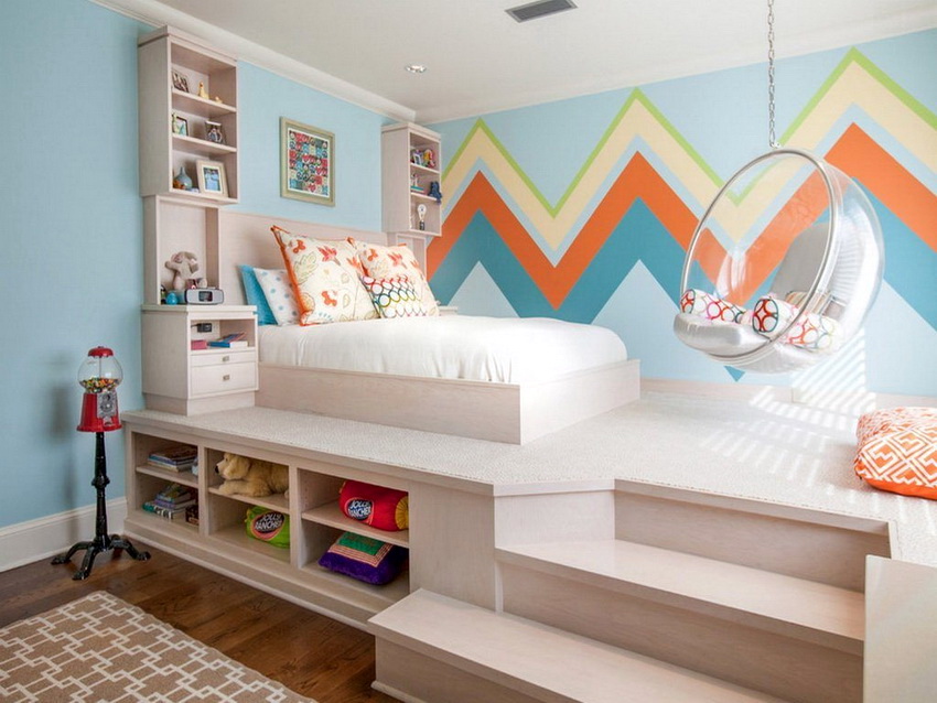 Girls 3-4 years old will love a loft bed or a transforming bed, equipped with a place for classes. Such structures can be equipped with a Swedish wall, which enables the child to develop physically.