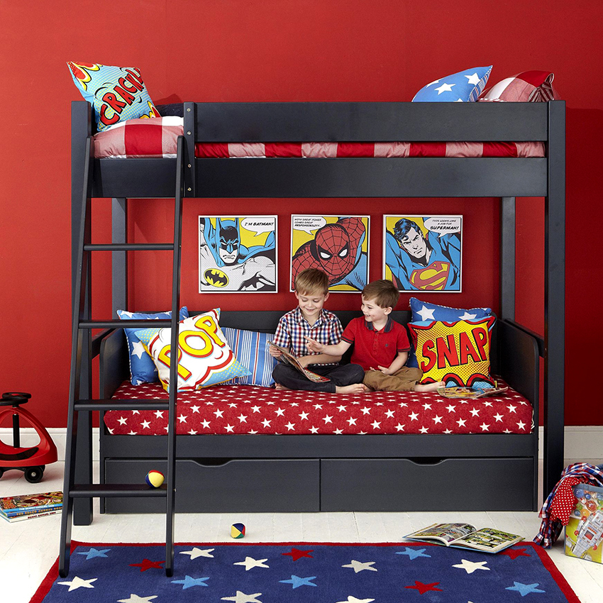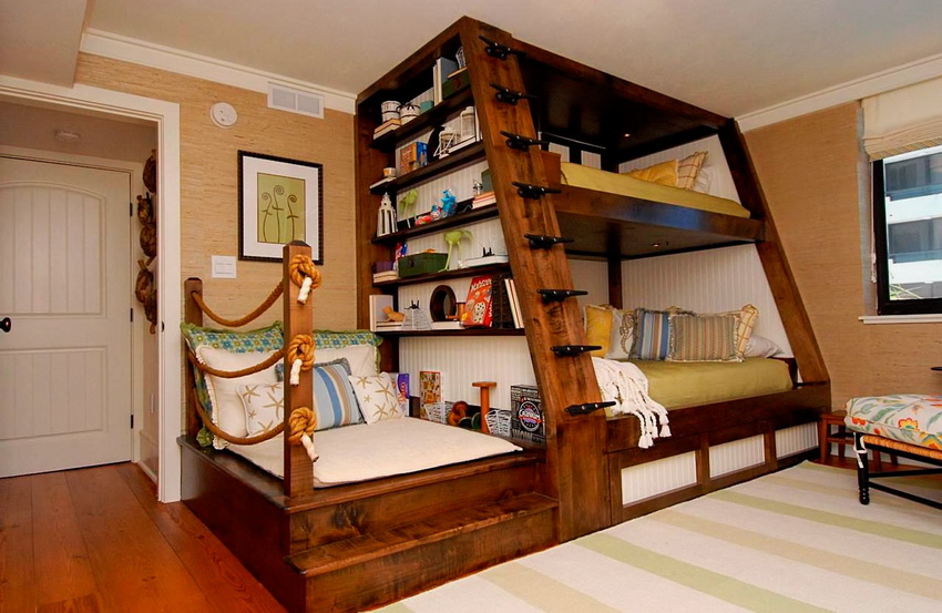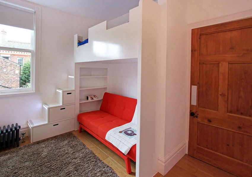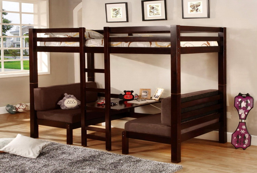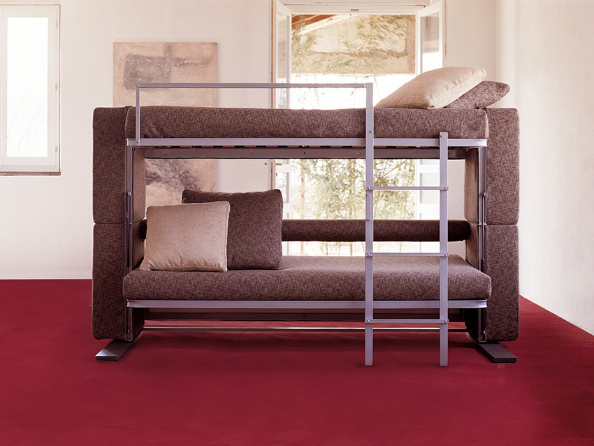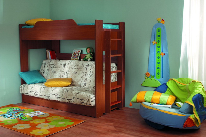 Buying a bunk transforming sofa is usually recommended for families with two same-sex children. Such a purchase will save space and eliminate the need to purchase two beds.
