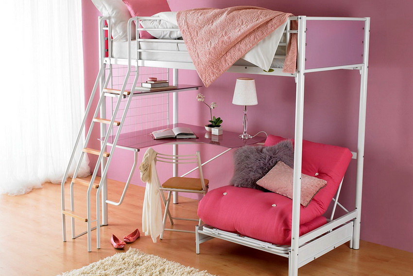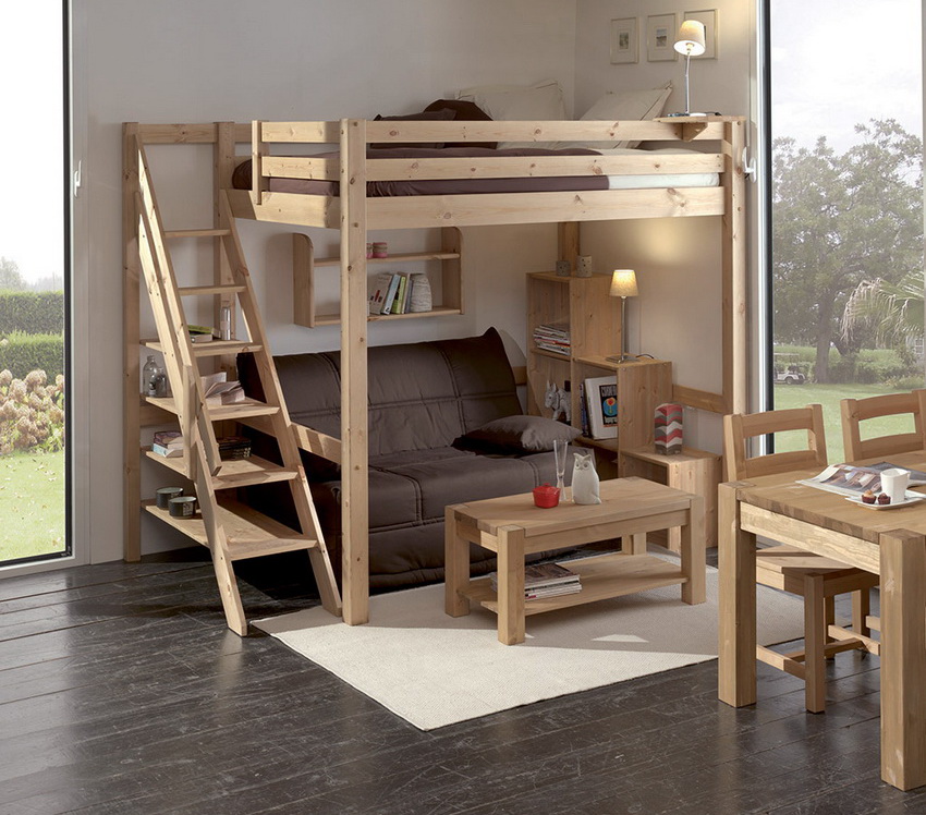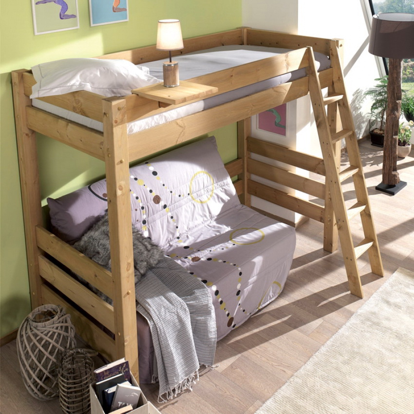 Loft bed with sofa below: versions and their features