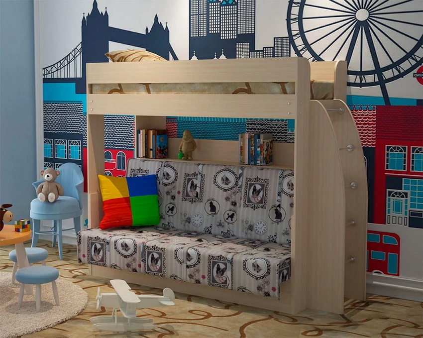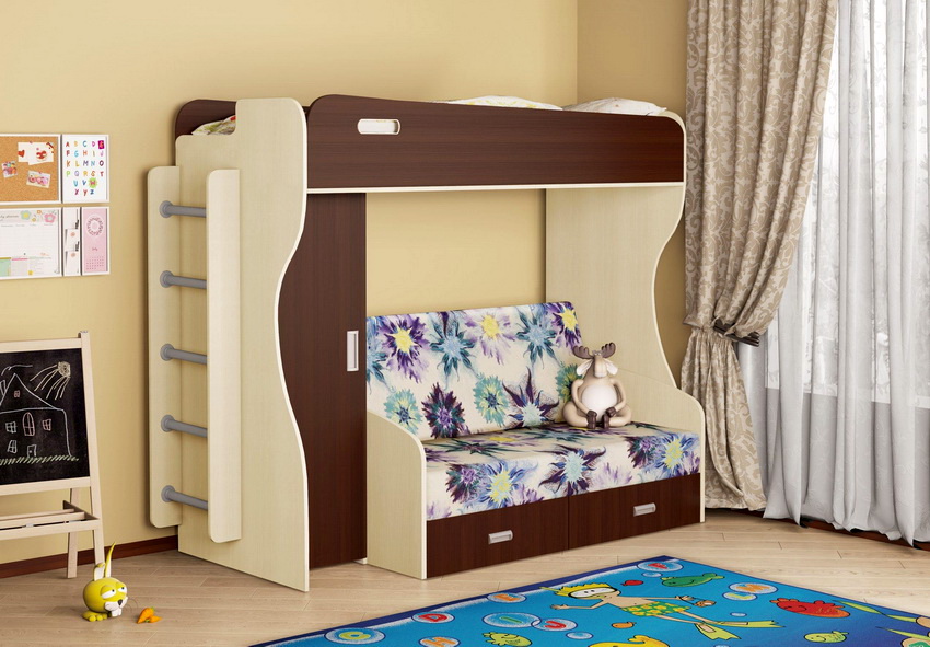 Bunk bed with a sofa - an ideal solution for a small apartment