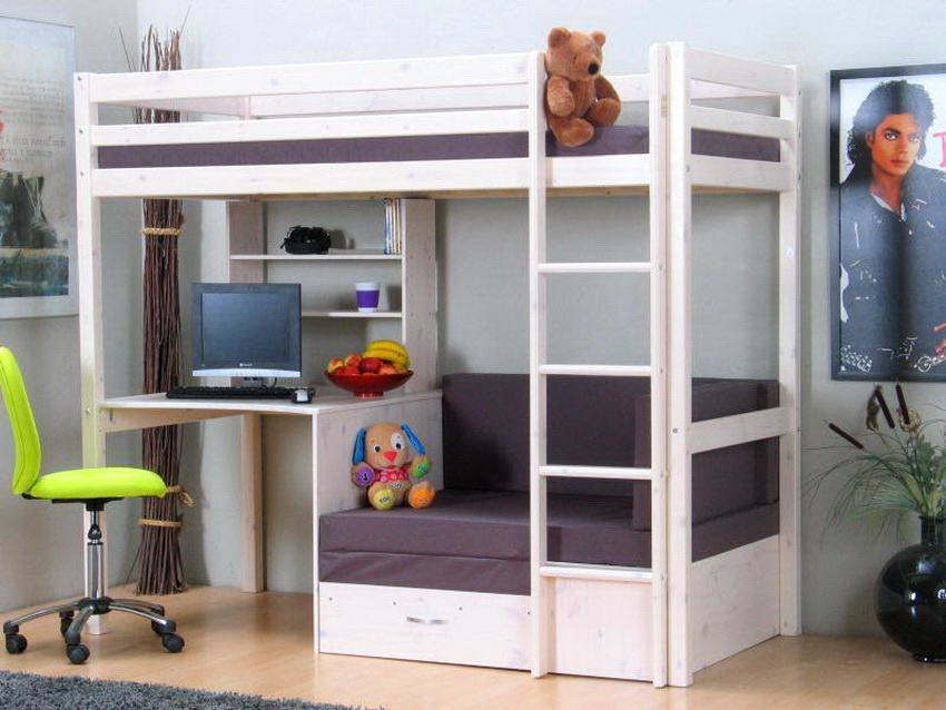 Over time, the functional purpose of the structures has expanded significantly. Models began to be equipped with drawers, cabinets, shelves and even play elements, for example, a slide for the descent. The loft bed has gained particular popularity.
