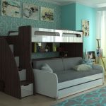 A model with a sofa is suitable for a room for two or even three children. Moreover, on furniture with a transformation mechanism, an accordion, dolphin or a book can also be used by adults. This is the best option for a small apartment where a family lives with a school-age child.