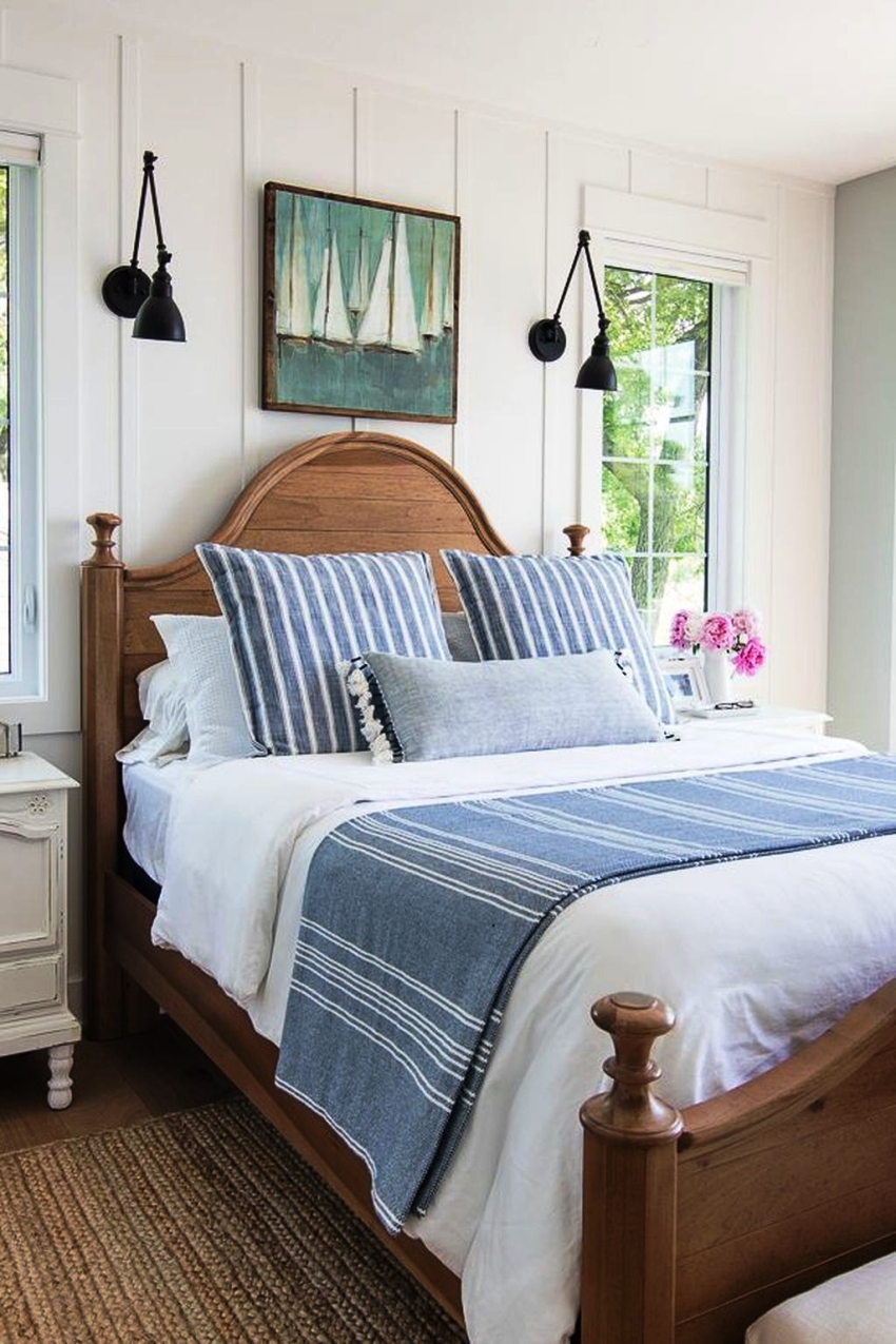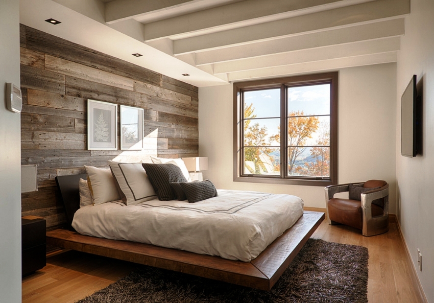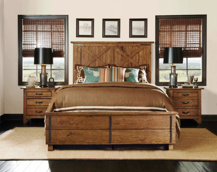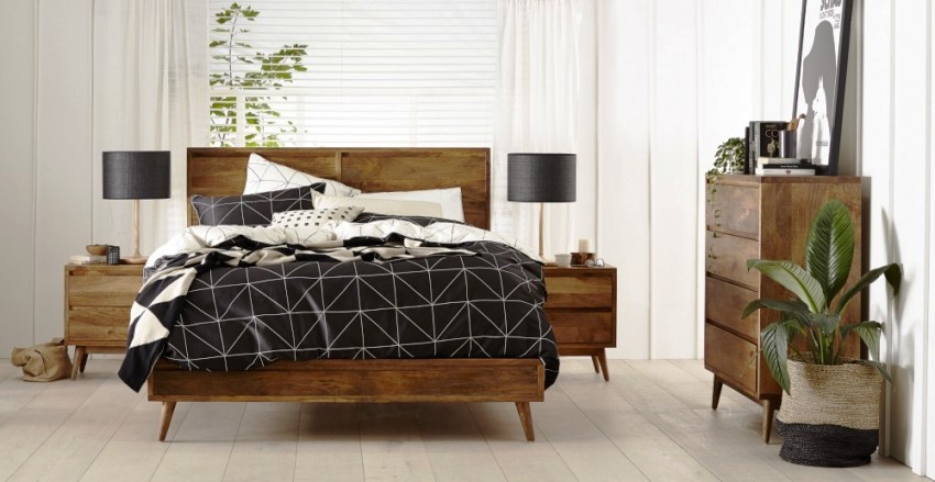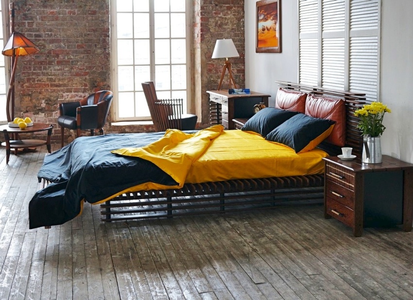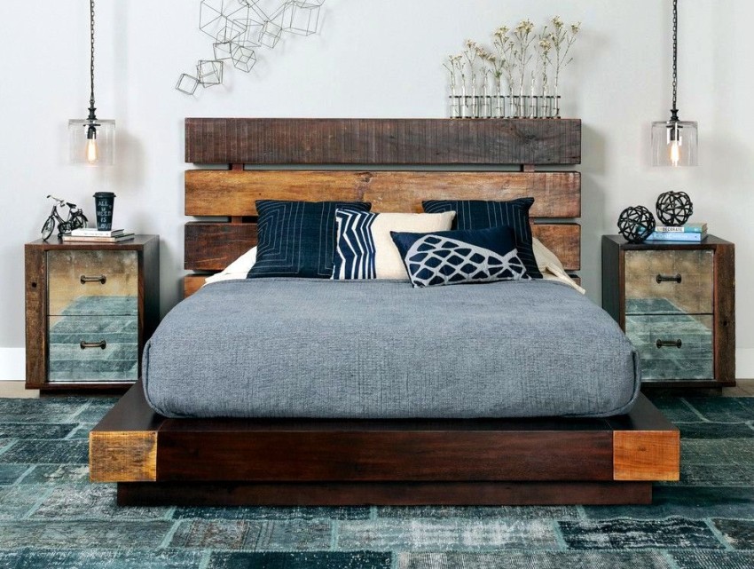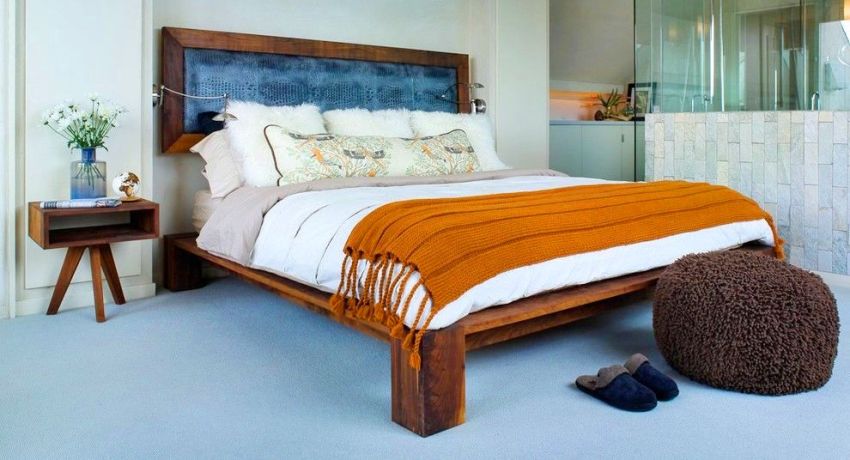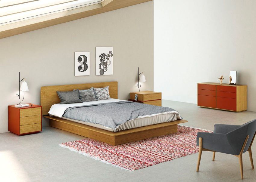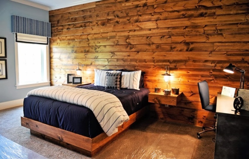 It is interesting! Wooden furniture makes the atmosphere in the bedroom more warm and cozy.