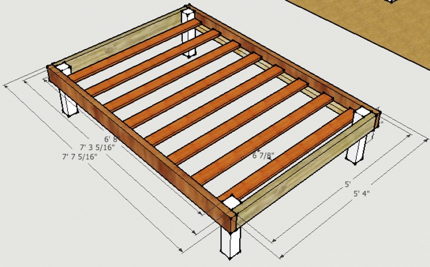 To start making furniture from an array with your own hands, you should draw up a detailed diagram. To do this, you need to decide in advance on the size and model of the bed. You must first select the size, height and thickness of the mattress.