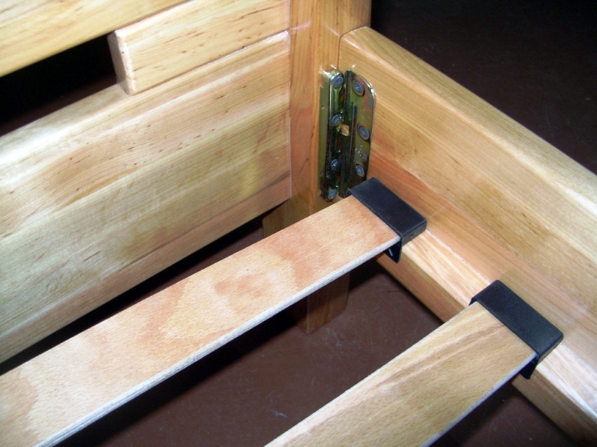 All ready-made components of the frame are covered with a stain, after drying of which 2 layers of quick-drying varnish are applied. Then the parts are connected to each other, and lamellas with a minimum step of 2-4 mm are fixed onto the finished frame made of beams, on which you can then lay the mattress, having previously made sure that the structure does not get dirty.